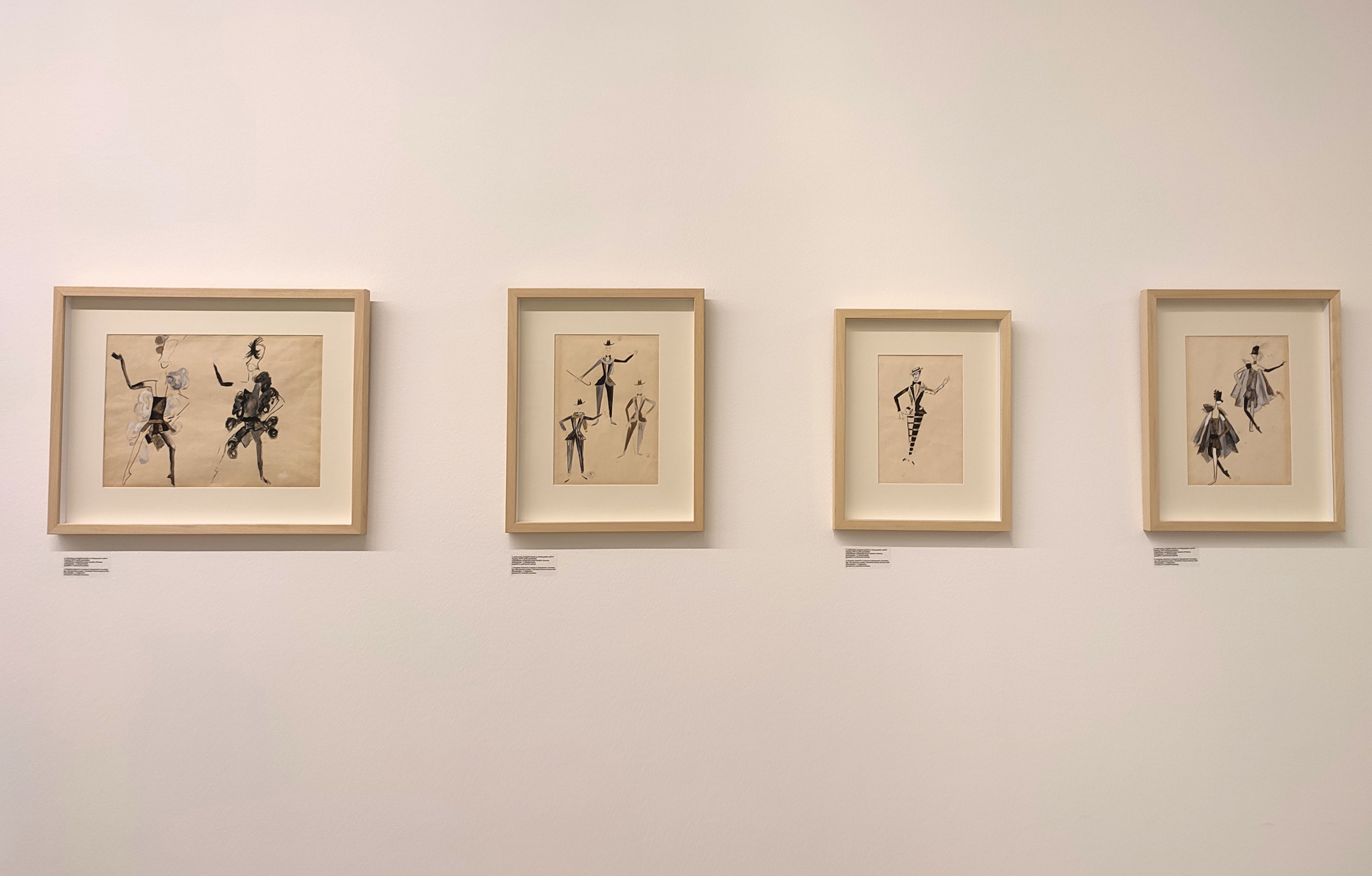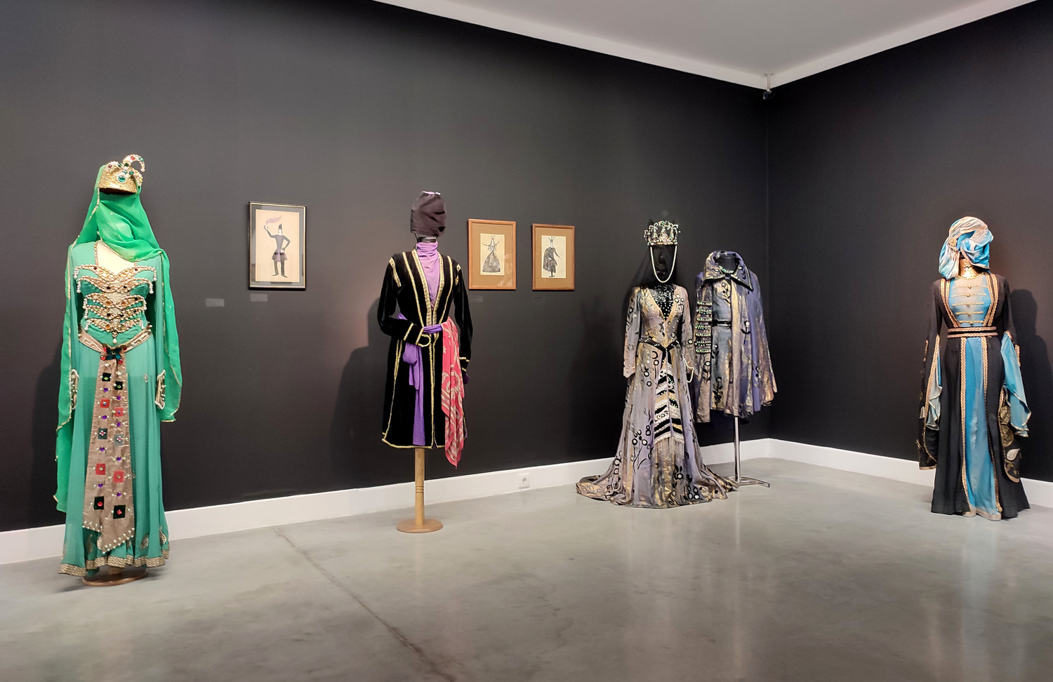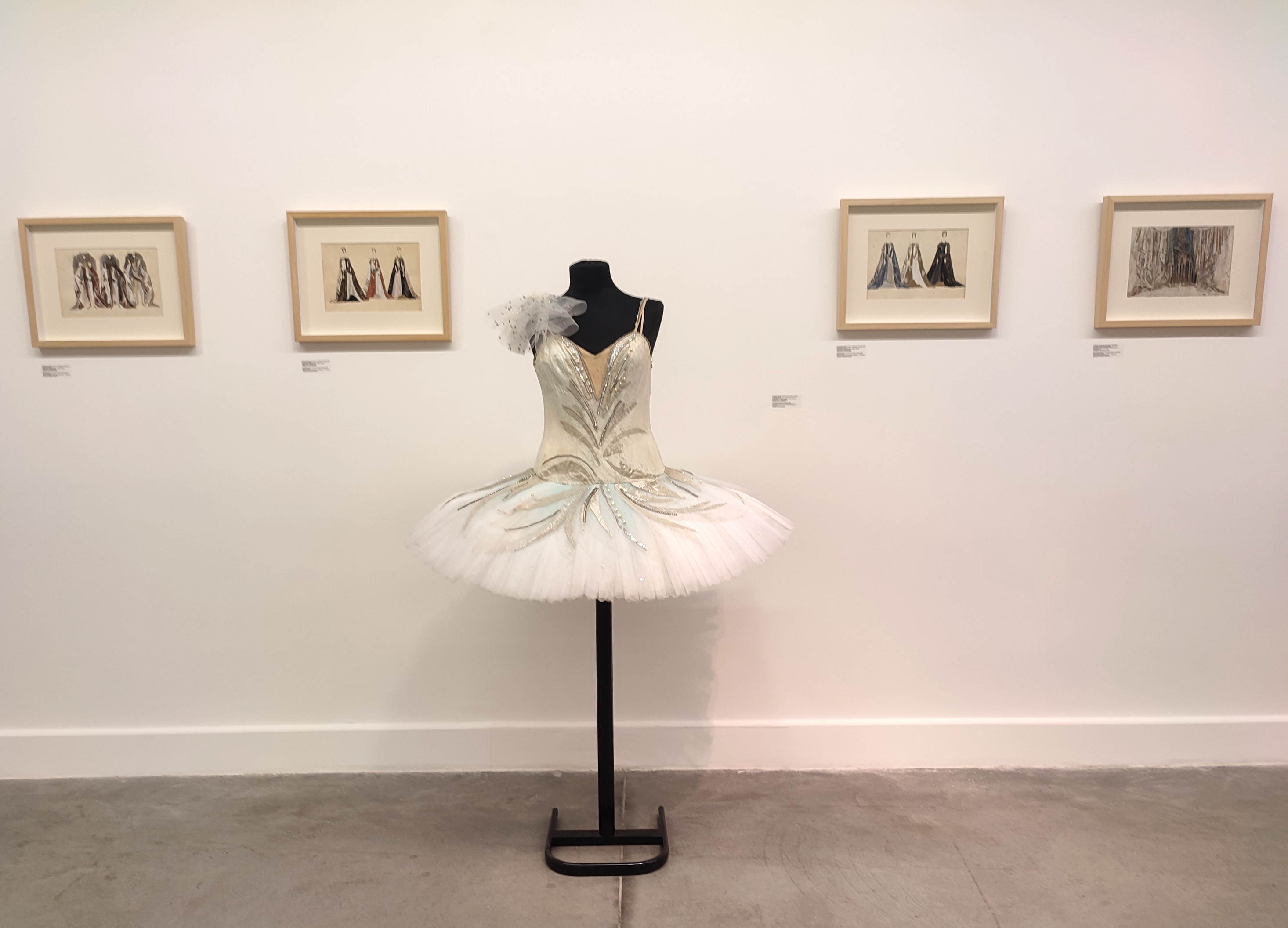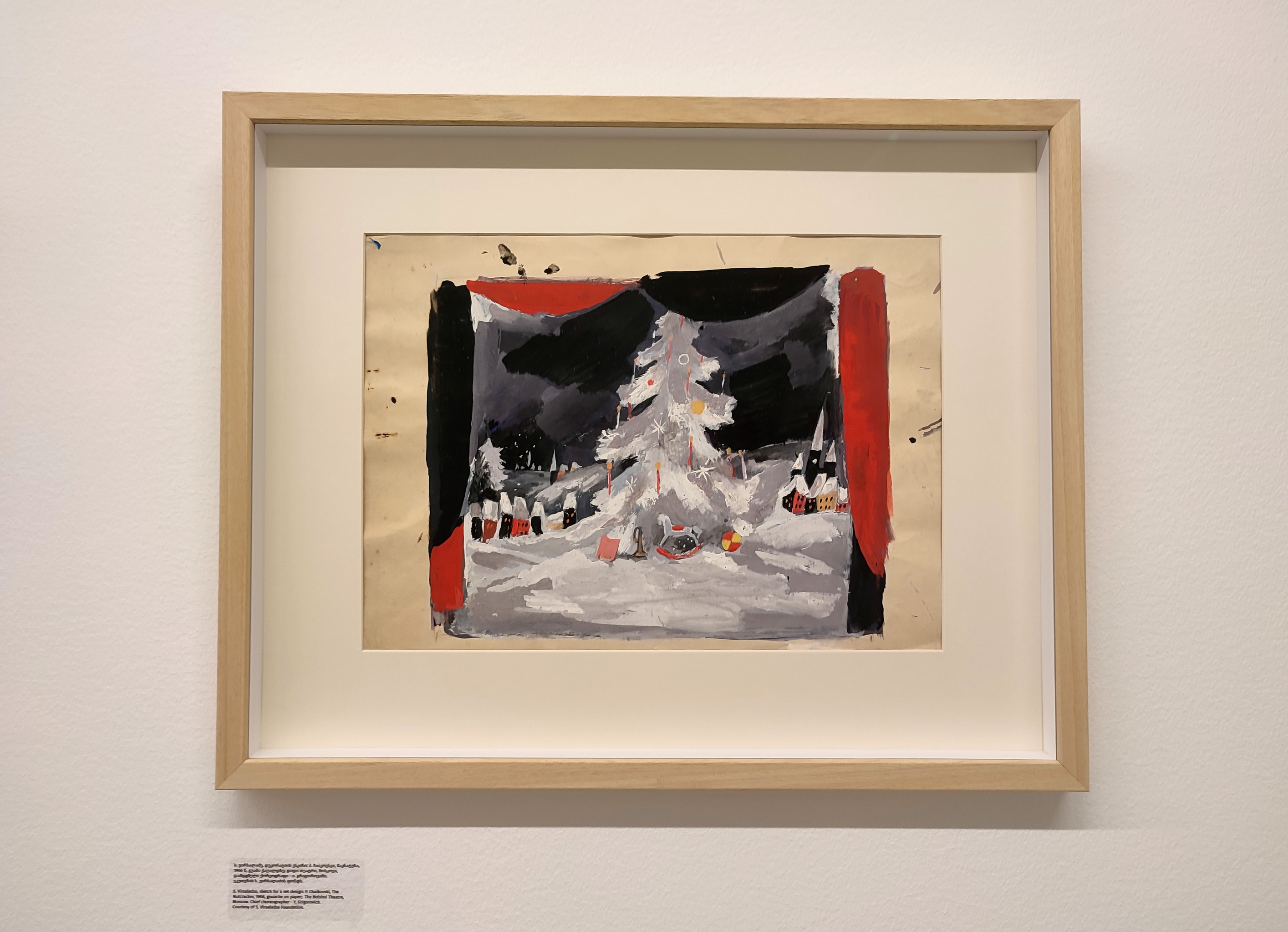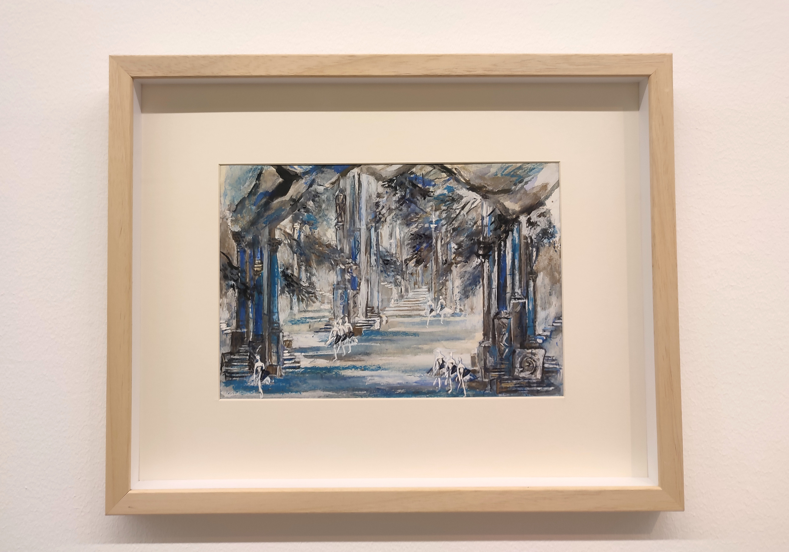 ამ მასშტაბურ და მრავალმხრივად საინტერესო ექსპოზიციაზე წარმოდგენილია დეკორაციისა და კოსტიუმების ესკიზები ბალეტებისთვის – „მძინარე მზეთუნახავი“ (1952 წელი), „შვიდი ლამაზმანი“ (1953 წელი), „მაკნატუნა“ (1954 წელი), „რომეო და ჯულიეტა“ (1978 წელი), „რაიმონდა“ (1984 წელი)… ამ დეკორაციებში კოსტიუმი განიხილება, როგორც საერთო კომპოზიციის რიტმულ ელემენტად, რადგან კოსტიუმი უფრო ჟღერადია, ვიდრე თუნდაც, სადა და მარტივი დეკორაცია. აქვეა გამოფენილი ჩანახატები ფილმისთვის „ჰამლეტი“ (1964 წელი), ესკიზები ოპერისთვის „აბესალომ და ეთერი“ (1952 წელი) და 1954 წლით დათარიღებული „გედების ტბის“ სცენოგრაფიისა და კოსტიუმების ჩანახატები, ქაღალდზე უფაქიზეს ოქროსფერ თუ ვერცხლისფერ გამაში შესრულებული. გუაშში ეს ერთგვარი ამოსუნთქვაა მსუბუქი, მოძრავი და ჰაეროვანი გრადაციებით. ფერთა ლივლივზე, ფერთა მეტაფორებსა თუ ფერის ემოციურ ინტელექტზე გენიოს ვირსალაძეს თავისი განსაზღვრება ჰქონდა მუსიკის ინსპირაციით ნაკარნახევი: