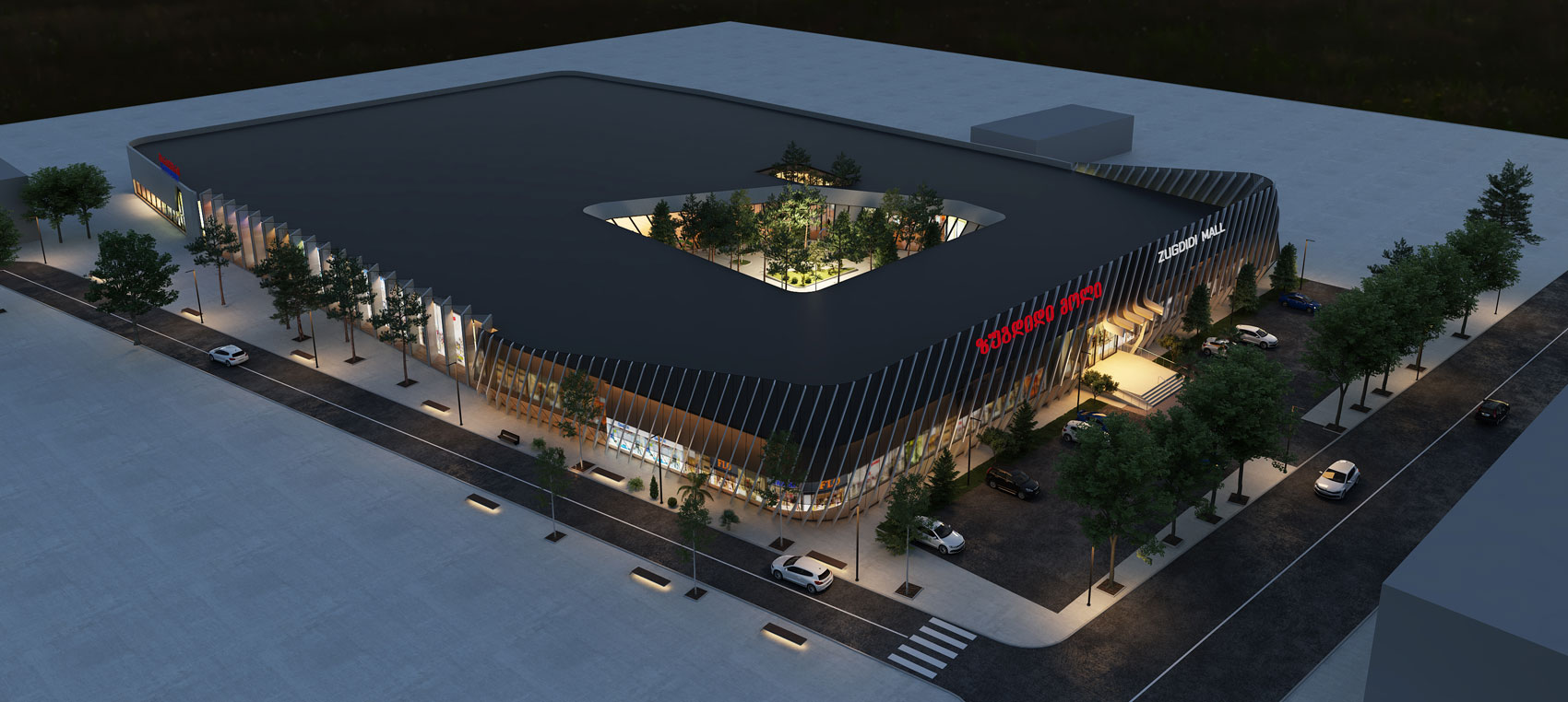 გამორჩეული არქიტექტურის მქონე სავაჭრო ცენტრი ზუგდიდის ცენტრალურ უბანში, კოსტავას ქუჩაზე მდებარეობს. ერთსართულიანი შენობის შუაში 850 კვ..-ის რეკრეაციული ზონაა მოწყობილი, ასწლოვანი ხეებით, სადაც სავაჭრო ცენტრის სტუმრები შეძლებენ განტვირთვას. როგორც ღია, ისე დახურულ სივრცეებში იმუშავებს  სხვადასხვა კვების ობიექტები, მათ შორის პიცერიალეოდოროდა აზიური სამზარეულოპო“.