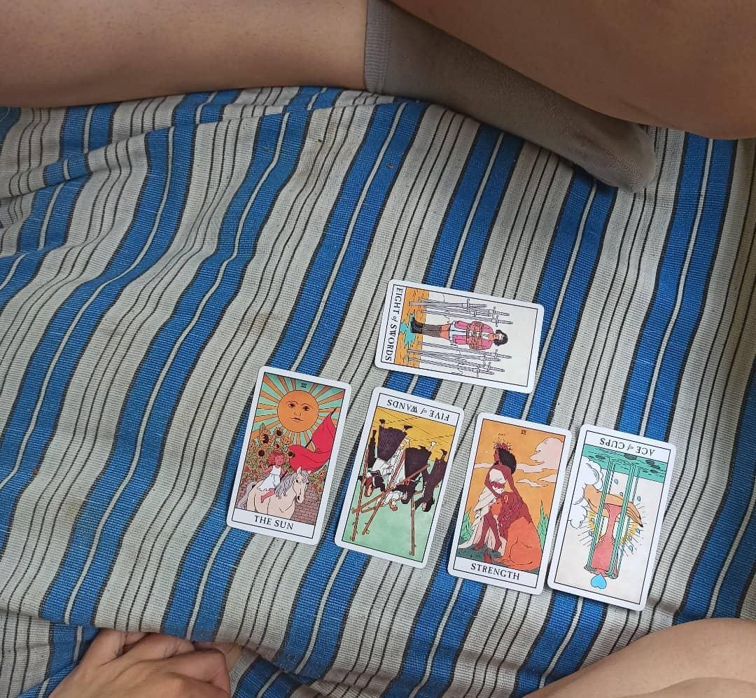 პირველად ტაროს 5 თვის წინ ვეზიარე საოცრად ემოციური ფონის თანხლებით, ელენემ დამსვა, გონება გამასუფთავებინა, მომიწოდა კონცენტრირებისკენ მთავარ კითხვებზე, დასტაზე ხელი დამადებინა და აჩეხისას შემთხვევით ამოტრიალებული კარტებით მისტიკური საღამო მომიწყო კურკუმას და ქოქოსის რძის უალკოჰოლო კოქტეილის თანხლებით.