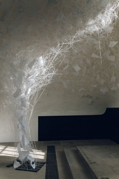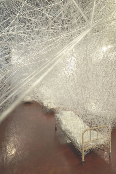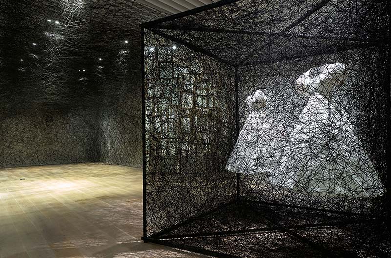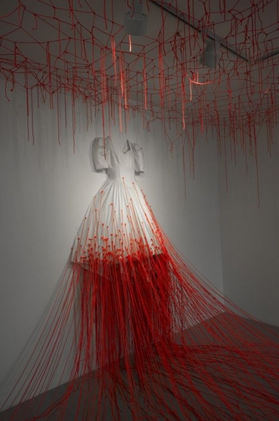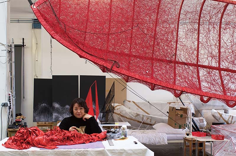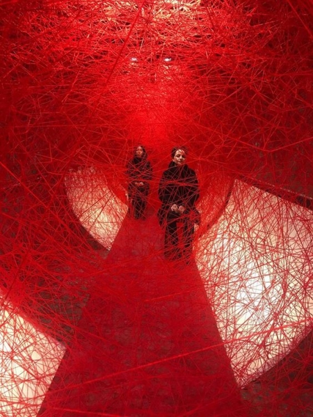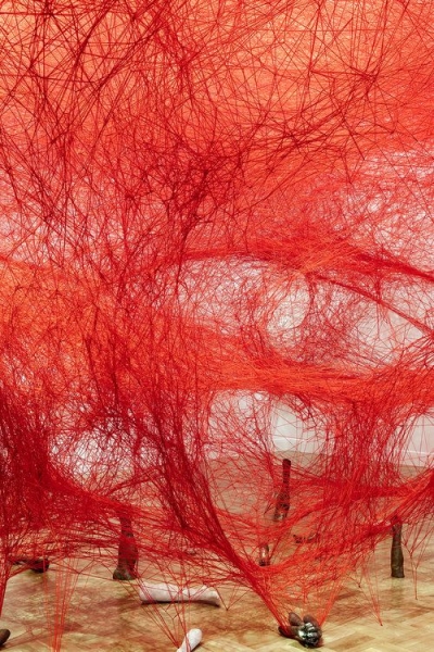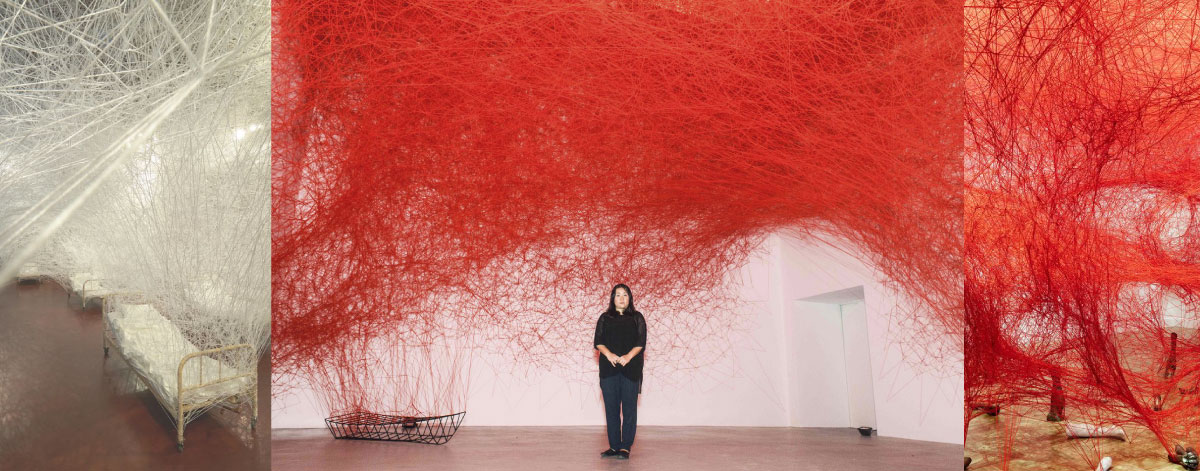 წითელი, თეთრი და შავი ძაფებისაგან შექმნილი ქსელები – ჩიჰარუ შიოტას ხელოვნება