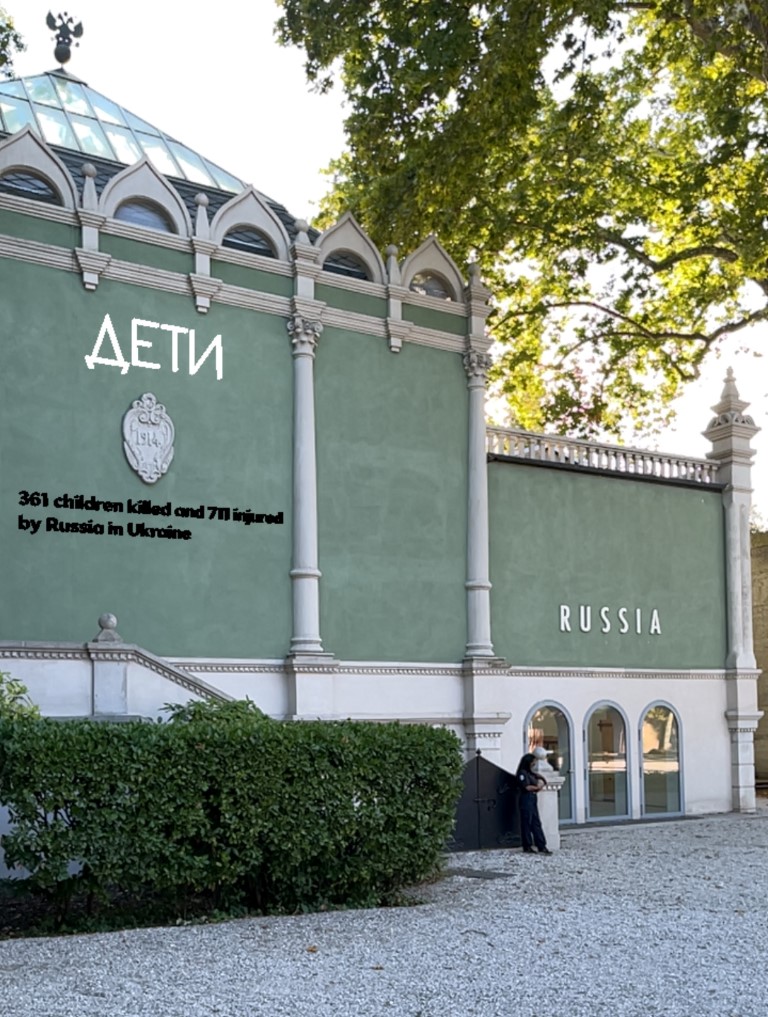 ქართველმა არტისტებმა ვენეციის ბიენალეს რუსეთის პავილიონს “ДЕТИ” (ბავშვები) დააწერეს