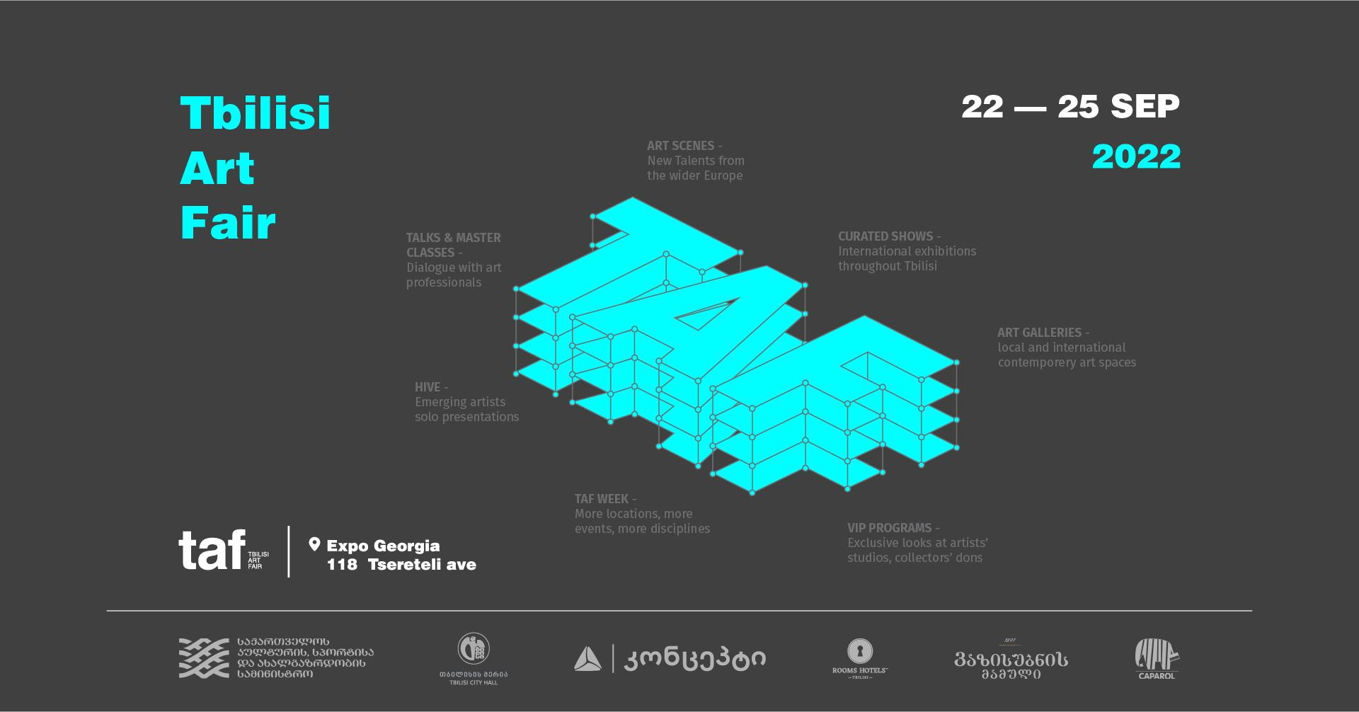 ორწლიანი პაუზის შემდეგ თბილისის თანამედროვე ხელოვნების მესამე ბაზრობა ბრუნდება – Tbilisi Art Fair 25 სექტემბრის ჩათვლით საგამოფენო ცენტრ ExpoGeorgia-ში გაიმართება. წლევანდელ თანამედროვე ხელოვნების ბაზრობაზე წარმოდგენილი იქნებიან როგორც ადგილობრივი და საერთაშორისო გალერეები, ისე დამოუკიდებელი ხელოვანები, რომლებსაც სახელოსნოს სექცია საშუალებას მისცემს, თავიანთი ნამუშევრები ფართო აუდიტორიას გააცნონ. რეგიონში ყველაზე მასშტაბური სახელოვნებო სივრცე კიდევ ერთხელ მოუყრის თავს კურატორებს, კრიტიკოსებს, კოლექციონერებს, საერთაშორისო მედიასა და სტუმრებს მსოფლიოს სხვადასხვა ქვეყნიდან. გამოფენების გარდა, ბაზრობის ფარგლებში იგეგმება პერფორმანსები, ვორქშოპები, Taf Talks და სხვა ტიპის აქტივობები, რომლებიც თანამედროვე ხელოვნების სცენებს შორის ურთიერთთანამშრომლობას წაახალისებს.