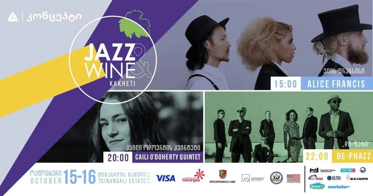 Eastern Promotions და თიბისი კონცეპტი 15 და 16 ოქტომბერს მეექვსე ფესტივალს – Jazz and Wine Kakheti-ს წარმოგიდგენთ. ფესტივალი კახეთში, წინანდლის მამულში გაიმართება და მონაწილეობას მიიღებენ ისეთი ჯაზმუსიკოსები, როგორებიც არიან – ელის ფრანსისი, კეილი ოდოერტის კვინტეტი და გერმანული ჯგუფი დი-ფაზი. ფესტივალს წელს პირველად ეყოლება სტუმარი ქვეყანა – ამერიკის შეერთებული შტატები. Jazz and Wine Kakheti-ის სტუმრებისთვის ღვინის დეგუსტაციაზე ქართული ღვინის 20-ზე მეტ მწარმოებელს ამერიკელი მეღვინე ნათან ზინდერი შეუერთდება (Nathan Zeender from Rockland Farms and Winery). სტუმარი ქვეყნის შეფმზარეული მეთიუ დოლანი კი (Chef Matthew Dolan) სტუმარ-მასპინძლებს ამერიკული კერძებით გაუმასპინძლდება. წინანდლის მამულში ჯაზისა და ღვინის ფესტივალი 15 ოქტომბერს, 13:00 საათზე ღვინის დეგუსტაციით გაიხსნება.