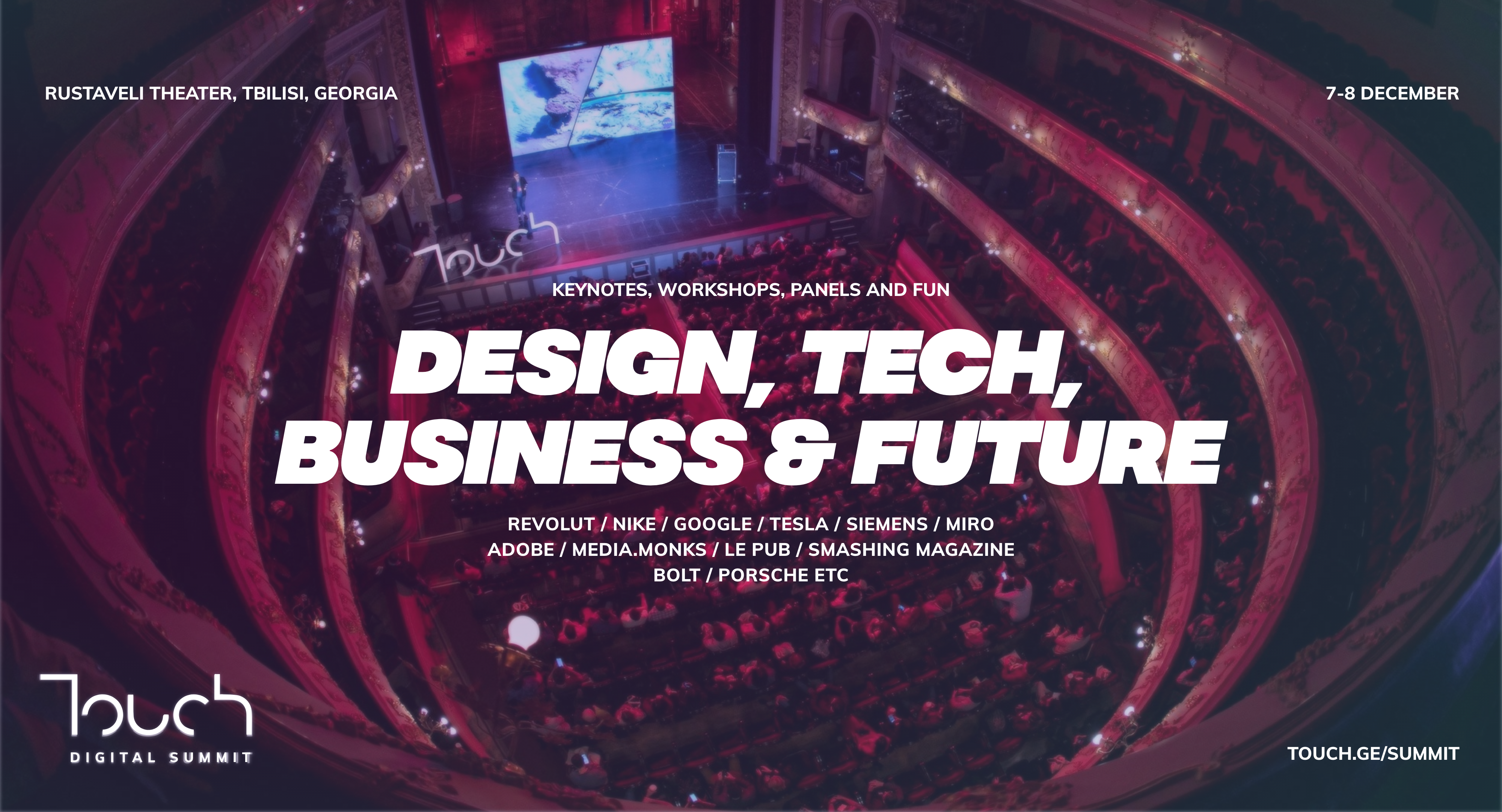 Touch Summit – საერთაშორისო სამიტია ბიზნესისა და ტექნოლოგიების შესახებ, რომელიც 7-8 დეკემბერს რუსთაველის თეატრში გაიმართება.