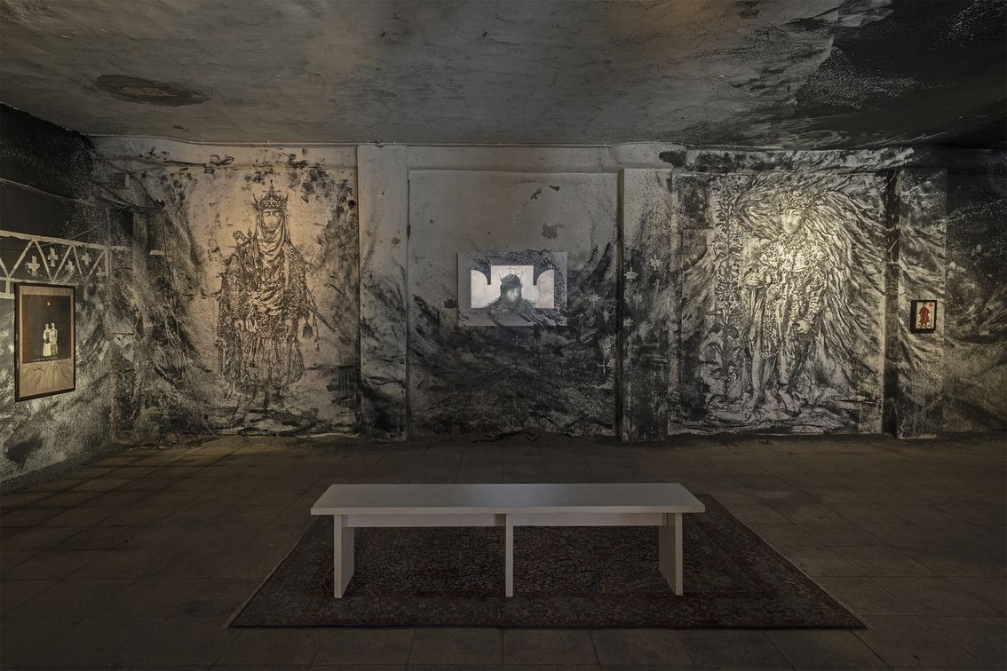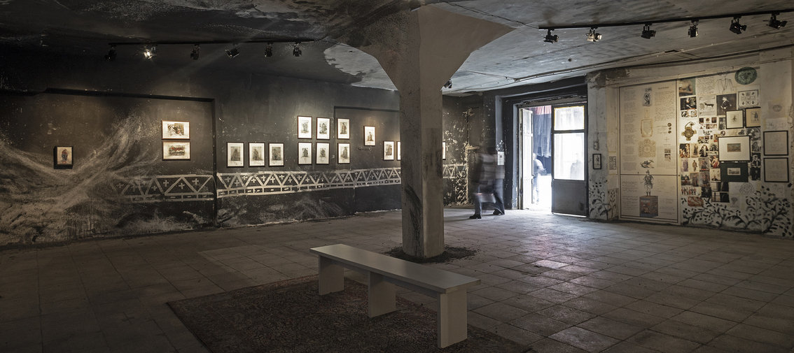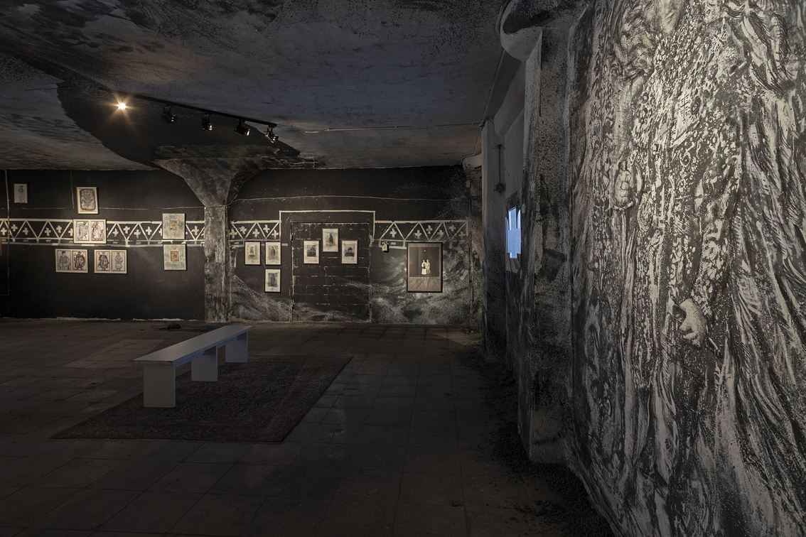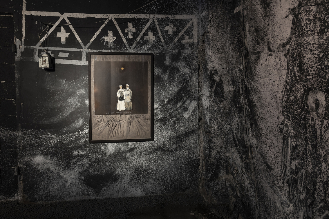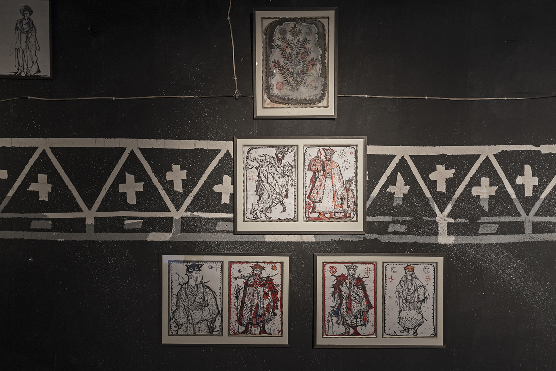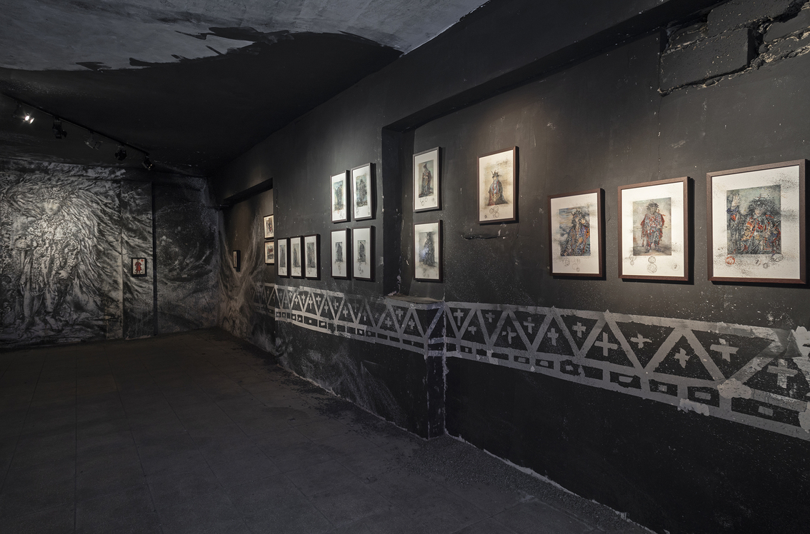 გამოფენის აღქმა თუ დათვალიერება შესაძლოა ყოველი მხრიდან, იქნება ეს ვოლტექსტი, ციფრული ტრიპტიხი, ნამუშევრები, შავი, აქრომატული ფონი, ხევსურული სამოსის დამცავი ორნამენტები თუ შავი წულის ბადისებრი ქსოვილით მორთული შემოსასვლელი. შავი წულის ქსოვილი ეხმიანება გამოფენის ფონს, რითაც იქმნება ერთგვარი “Camera obscura” (შავი ოთახი). შესაძლოა ეს გადაწყვეტა იყოს რეფერენციული საქართველოს ისტორიული მეხსიერების, სიკვდილთან თანაზიარი კულტურის, რადგანაც ქართული ეროვნული სამოსის ამსახველი გამოსახულებები თუ ნამუშევრები სწორედ ამ საკითხებს იკვლევს – „ევრაზიული და ტრანსკავკასიური“ ცნებების ფორმაცია. შემოსასვლელი რამდენადმე შავი ძაძებით აჩარჩოებს და მოსავს ქართული კულტურისა და გეოპოლიტიკის საკითხებს.