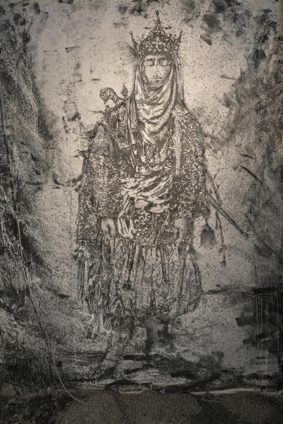 შავ ფერზე, როგორც საგამოფენო ფონზე, განლაგებულია ნამუშევრების ერთიანი სერია, ერთმანეთის მიჯრით თუ არეული ტრაექტორიით. შავი ფერი განათების კონცენტრაციას და ამონათებას განაპირობებს – ემანაციას, ეპიფანიას, ანუ სინათლის, სასწაულის ხილვა-გამოცხადებას; სინათლის ფონზე ქართული ფეოდალური ფერადოვნების ნამუშევრებს ვუმზერთ. მათი ფერადოვანი ხავერდი და სილაღე ზომიერია, დამჯდარი ქრომატული სიხშირის, რაღაც ისტორიული მეხსიერების დონეზეა „აალებულიდან აღდგენილი“.