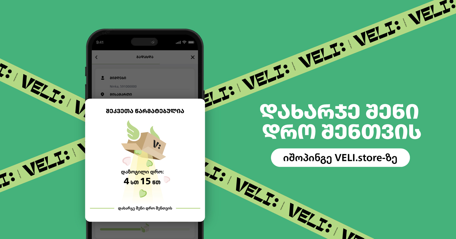 VELI.Store საქართველოში შექმნილი ელკომერციის პლატფორმაა, რომელიც ადამიანებისთვის დროის დაზოგვით საყიდლების რუტინას ცვლის და ახალ კულტურას აყალიბებს. ციფრული პლატფორმა ინოვაციურ ტექნოლოგიურ გადაწყვეტებსა და სამომხმარებლო გამოცდილების დიზაინის პრინციპებს ეყრდნობა. VELI.store ცდილობს, შეამციროს როგორც პლატფორმაზე გატარებული, ისე შეკვეთის გაცემიდან ამანათის მიღებამდე გასული დრო და სანაცვლოდ ეს დრო მომხმარებელს გაუთავისუფლოს.
