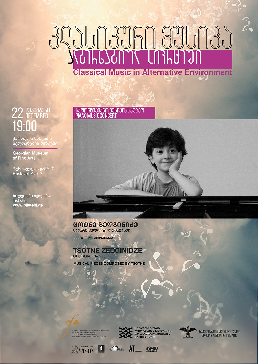 22 დეკემბერს საფორტეპიანო მუსიკის კონცერტს გამართავს ახალგაზრდა ქართველი პიანისტი და კომპოზიტორი ცოტნე ზედგინიძე, რომელიც საავტორო პროგრამას შეასრულებს.