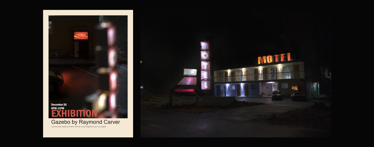 გამოფენისთვის მზადება ავტორებმა ორი წლის წინ დაიწყეს და მისი იდეა ამერიკელი მწერლის, რაიმონდ კარვერის ერთ-ერთი მოთხრობის მიხედვით გაუჩნდათ. მოთხრობა შესულია კარვერის ცნობილ წიგნში „რაზე ვლაპარაკობთ, როცა სიყვარულზე ვლაპარაკობთ ხოლმე”. შეყვარებული წყვილის ამბავი Midnight Motel-ში ხდება. სწორედ ეს მოტელი და მისი ლანდშაფტი იქნება გადმოტანილი საგამოფენო სივრცეში.