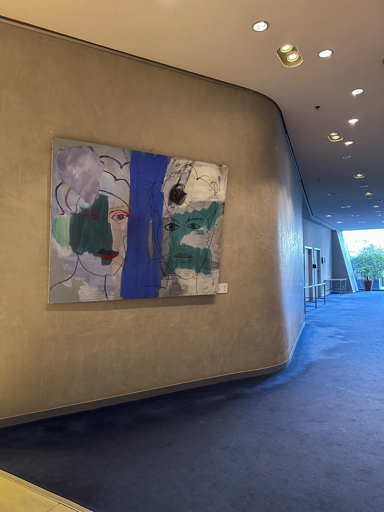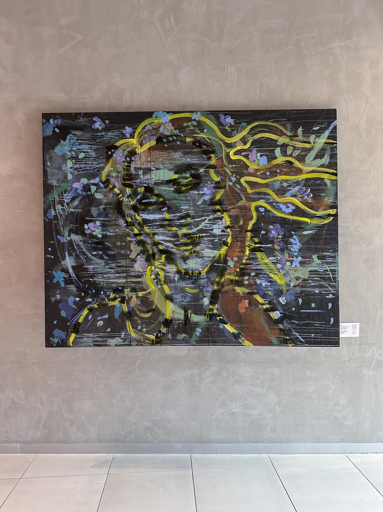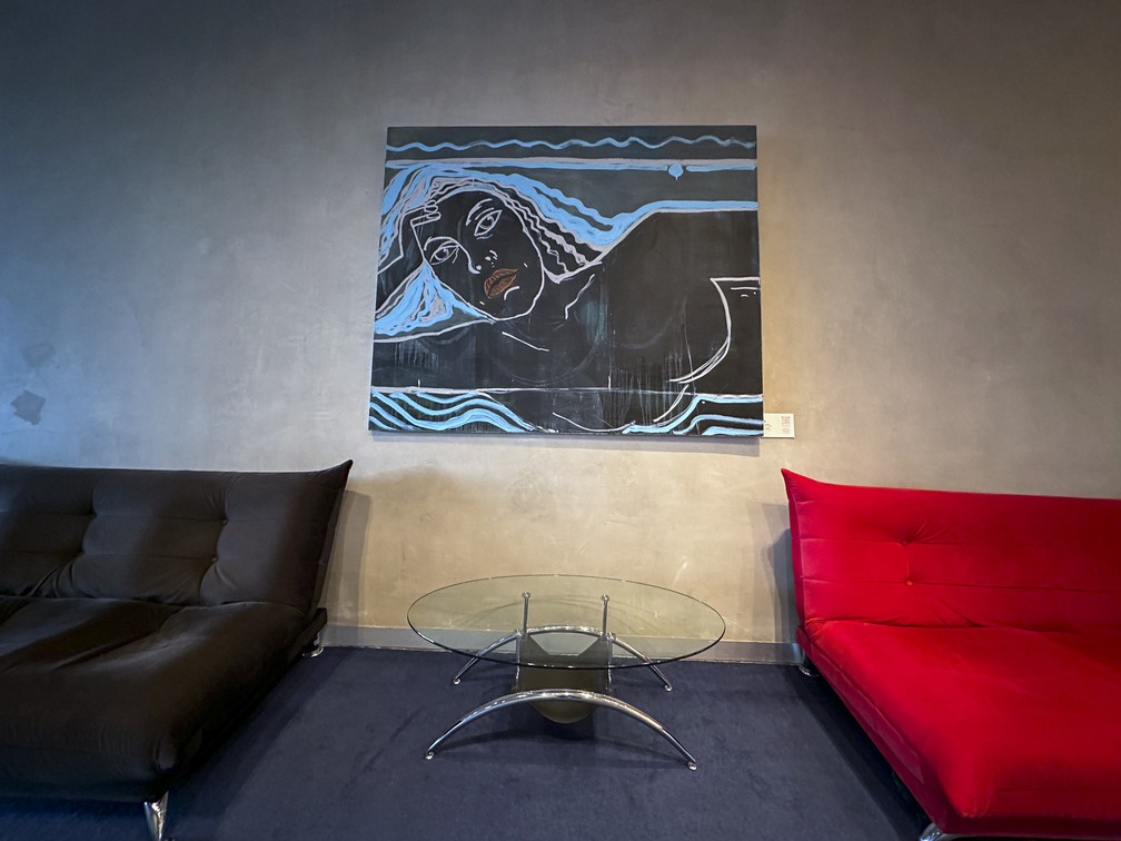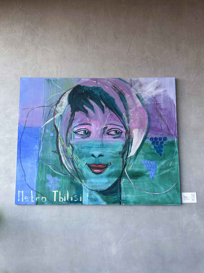 ეს გამოფენა ფორმით და შინაარსით ზუსტად ჩაჯდა „რადისონ ბლუ ივერიას“ არქიტექტურასა და    გამჭვირვალე სივრცეში, საიდანაც ქალაქის რიტმსა და  სიახლოვეს ძალიან ვგრძნობთ. ეს სიახლოვე ნამუშევრების ხელწერიდან თუ ცალკეული დეტალებიდანაც იგრძნობა, თუნდაც ადგილის კონტექსტიდან გამომდინარე:  მაგალითად, ამ  დინამიკურ ნამუშევარს ქალის გამოსახულებით, რომელსაც „მეტრო თბილისი“   ჰქვია და რომლის მთავარ შტრიხს ტილოზე დატანილი წარწერა METRO TBILISI  წარმოადგენს,  მომენტალურად  60-იანი წლების თბილისში მივყავართ   და ვიზუალურად გამოსახული სიტყვები ქვეცნობიერად აქვე ახლოს, იმდროინდელ   ლეგენდარულ „კაფე მეტროს“ გვახსენებს.  თუმცა ეს  ერთი პატარა დეტალი – შრიფტი და წარწერა ჩვენს  ვიზუალურ წარმოსახვას ეთამაშება. მხატვარი კი აკონკრეტებს და მიხსნის: