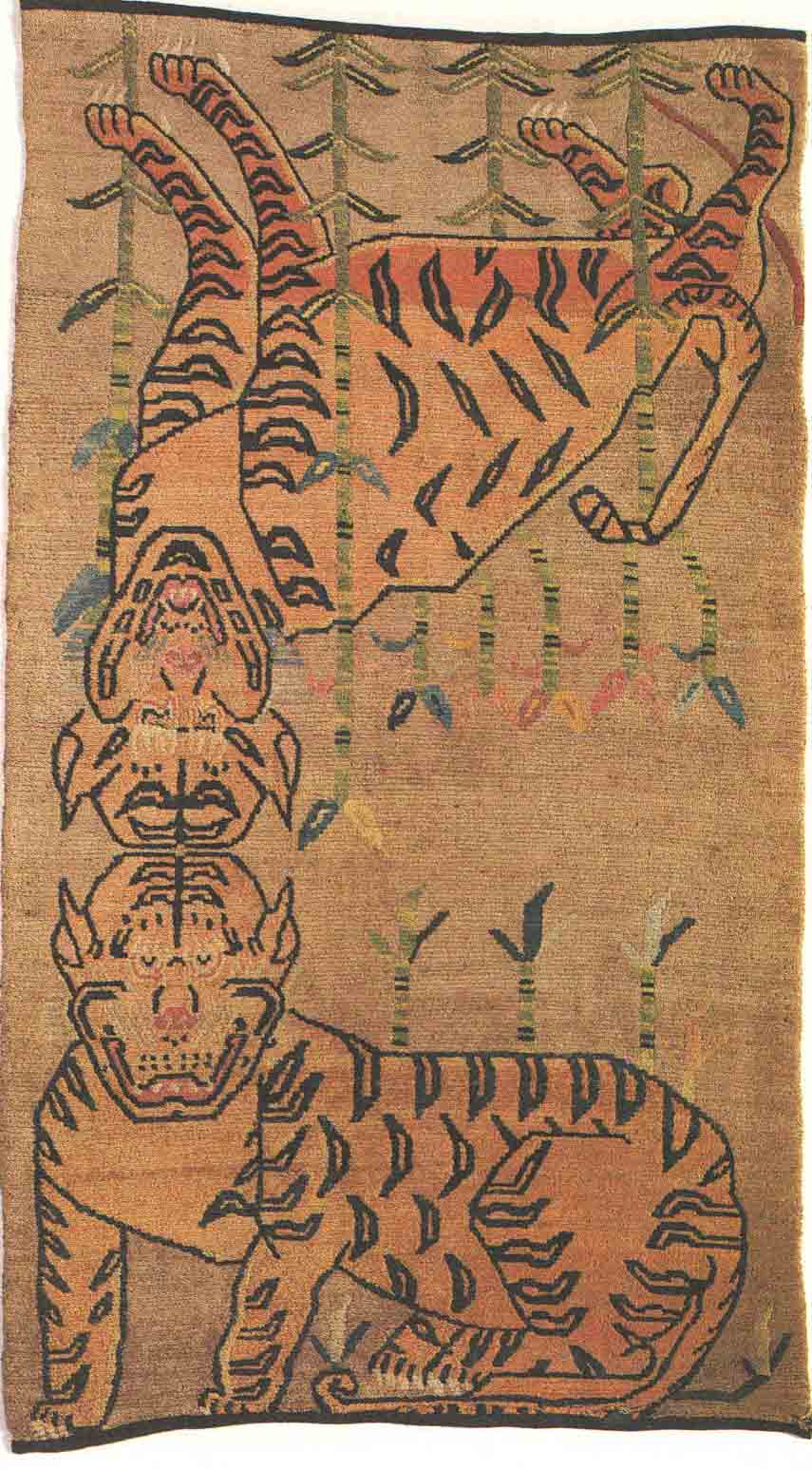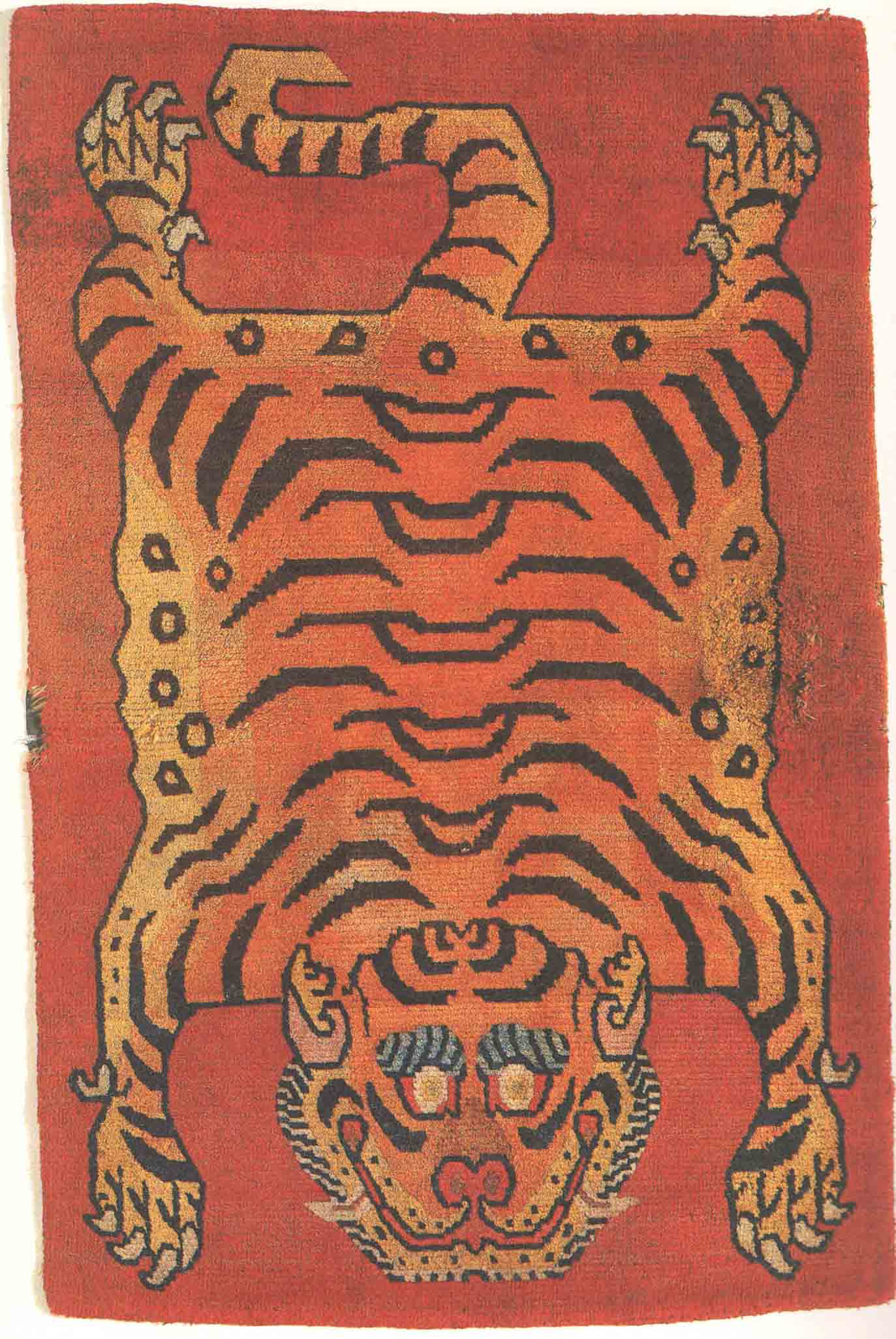 ტიბეტურ და ინდურ კულტურაში ვეფხვის მოტივი პოპულარულია, მათთვის ეს ცხოველი ძალაუფლების, სტატუსის, მრისხანების, გონიერების, დაცვის და სიმამაცის სიმბოლოა. ვეფხვის ტყავის გამოსახულება ხშირად გვხვდება ხალიჩებსა და თანგკებზე (აბრეშუმზე ან სხვა ქსოვილზე შესრულებული რელიგიური შინაარსის ნახატი, რომლის ფუნქციაც მათზე ასახული სიუჟეტების დიდაქტიკური შინაარსის გამო საგანმანათლებლო და შემეცნებითი იყო), სარიტუალო ტახტები დეკორირებული იყო ვეფხვის ტყავით, მეომრებიც ვეფხვის ბეწვით იყვნენ შემოსილები და მათ საფლავებზეც ცნობილი ზოლიანი პატერნი იყო დატანილი, ღმერთები ვეფხვებზე ამხედრებულები გამოიხატებოდნენ, თვით ღვთაება შივას ძირითადი სამოსი ვეფხვის ტყავია (რომელიც მან, ლეგენდის თანახმად, თვითონ დაამარცხა), ტიბეტელი ბერები მედიტირებდნენ ვეფხვის ტყავებზე, ითვლებოდა, რომ ვეფხვის ტყავი თავისი მრისხანებით მედიტაციისას იცავდა ბერებს გარემომცველი ზიანისგან, ვეფხვის ხალიჩებს ძირითადად საჩუქრად უძღვნიდნენ ლამებს (ტიბეტური ბუდიზმის სულიერი ლიდერი) და ფეხზე ვეფხვის ზოლებით შეგვიძლია ამოვიცნოთ დალაი ლამა სხვადასხვა რელიგიურ იმიჯებში, ვეფხვის ტყავით აფორმებდნენ მონასტრების შესასვლელ კარიბჭეებს, დაცვის სიმბოლიკით.