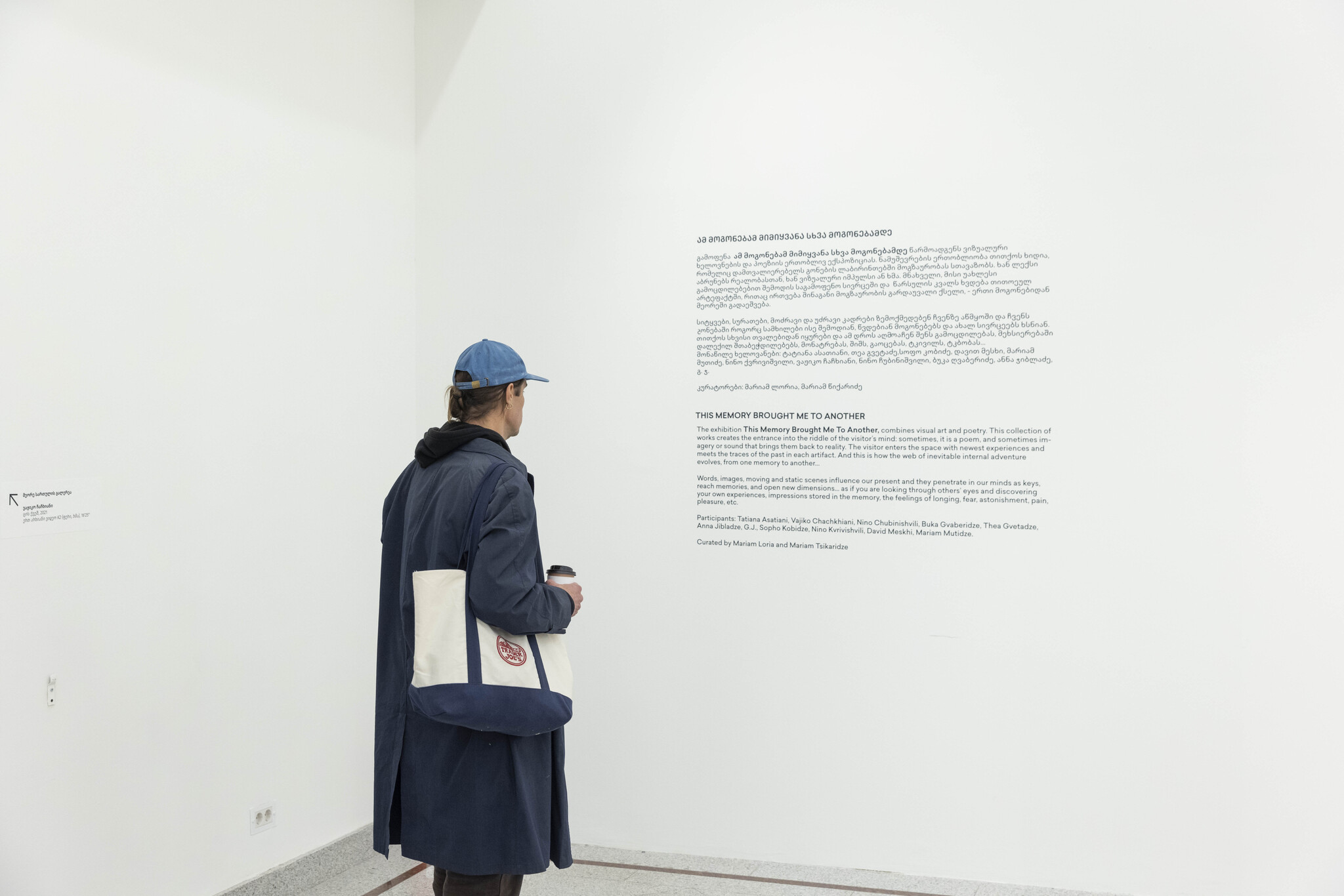 სიტყვები, სურათები, მოძრავი და უძრავი კადრები ზემოქმედებენ ჩვენზე აწმყოში და ჩვენს გონებაში, როგორც სამხილები ისე შემოდიან, მოგონებებს და ახალ სივრცეებს ხსნიან. თითქოს სხვისი თვალიდან იყურები და ამ დროს აღმოაჩენ შენს გამოცდილებას, მეხსიერებაში დალექილ შთაბეჭდილებებს, მონატრებას, შიშს, გაოცებას, ტკივილს, ტკბობას… გამოფენაში მონაწილე ხელოვანები – ტატიანა ასათიანი, თეა გვეტაძე, სოფო კობიძე, დავით მესხი, მარიამ მუთიძე, ნინო ქვრივიშვილი, ვაჟიკო ჩაჩხიანი, ნინო ჩუბინიშვილი, ბუკა ღვაბერიძე, ანნა ჯიბლაძე და გ. ჯ – სივრცეში წარმოდგენილ ნამუშევრებში მეხსიერების თემატიკას ეხებიან და ჩვენს გონებაში მის შრეებს სხვადასხვა რაკურსით შლიან.