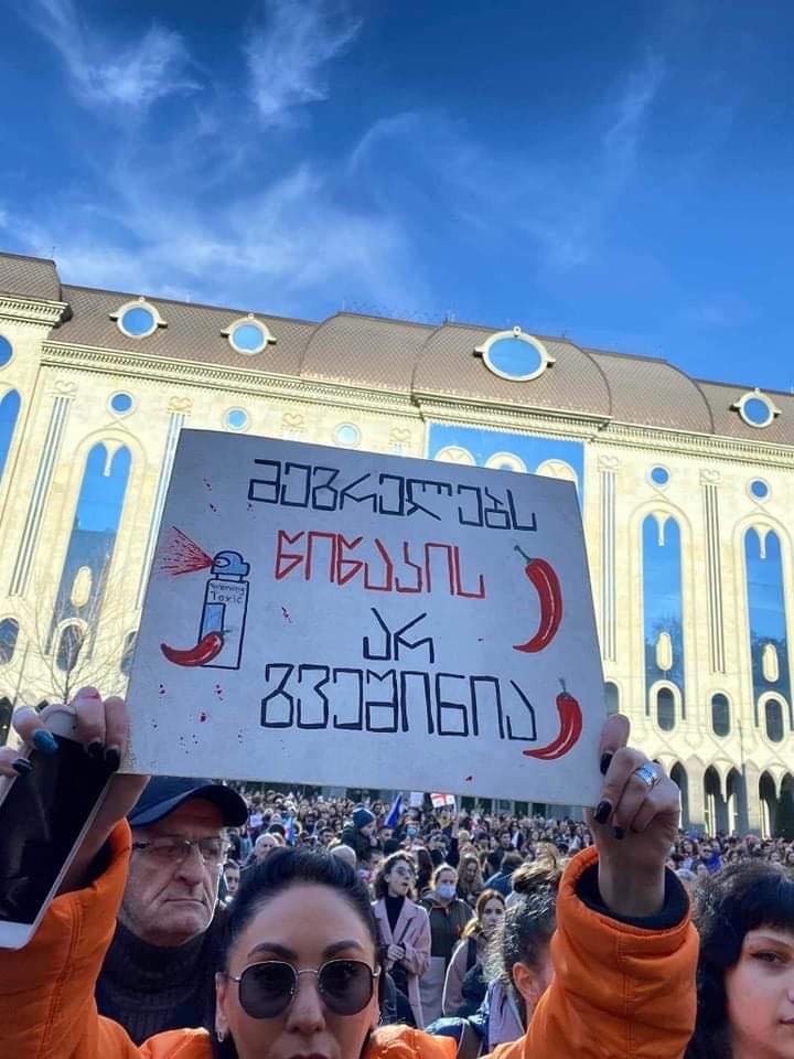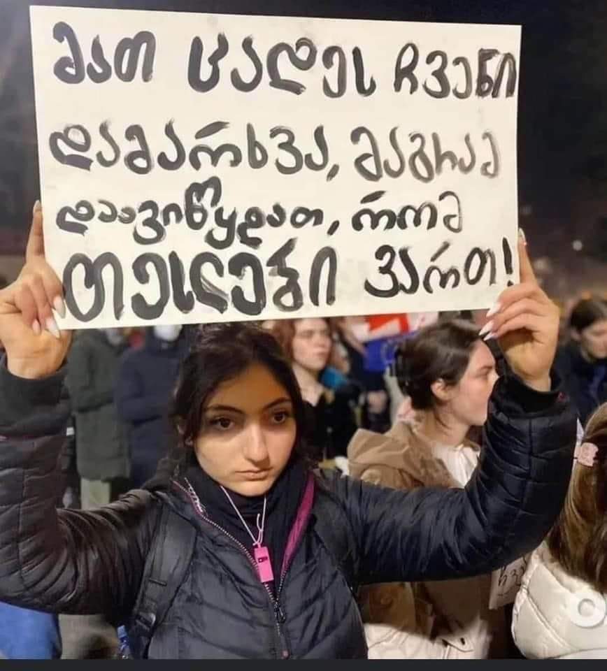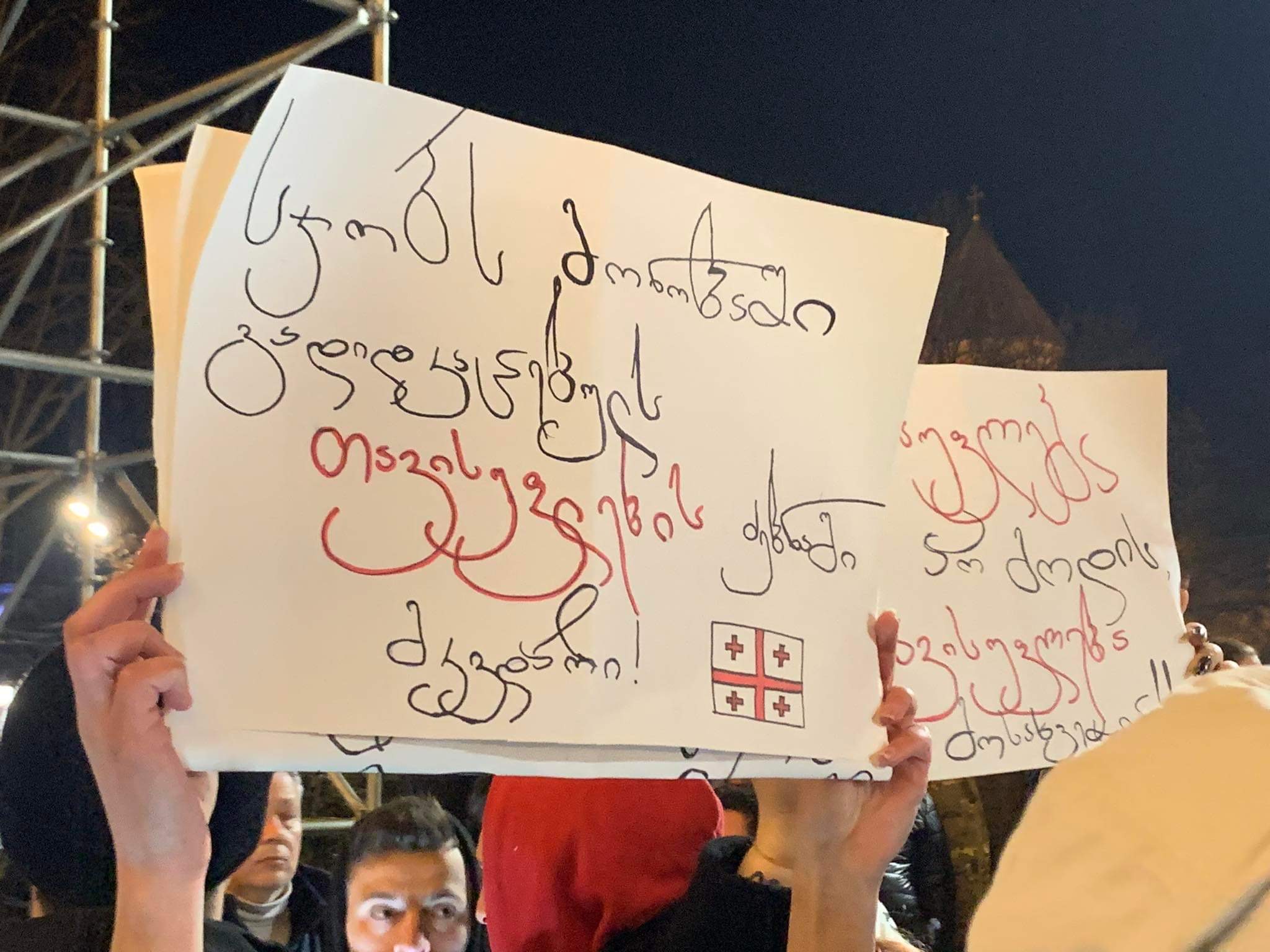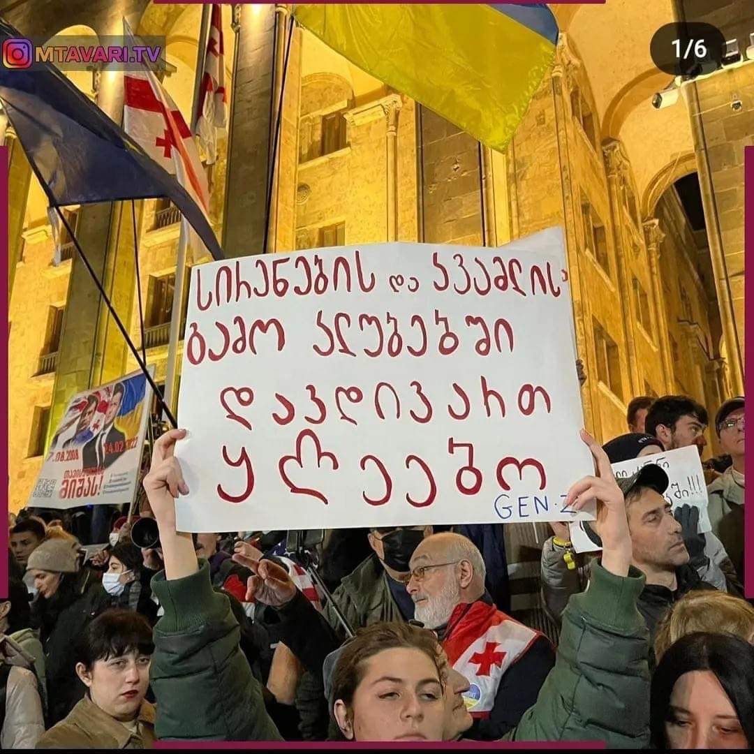 ნახეთ სიანტერესო ტრაფარეტები და წარწერები საპროტესტო აქციიდან #არარუსულკანონს