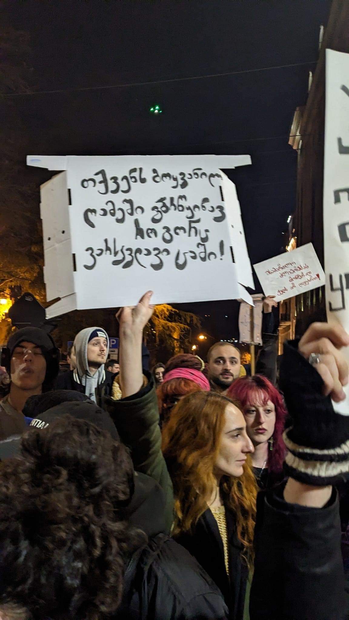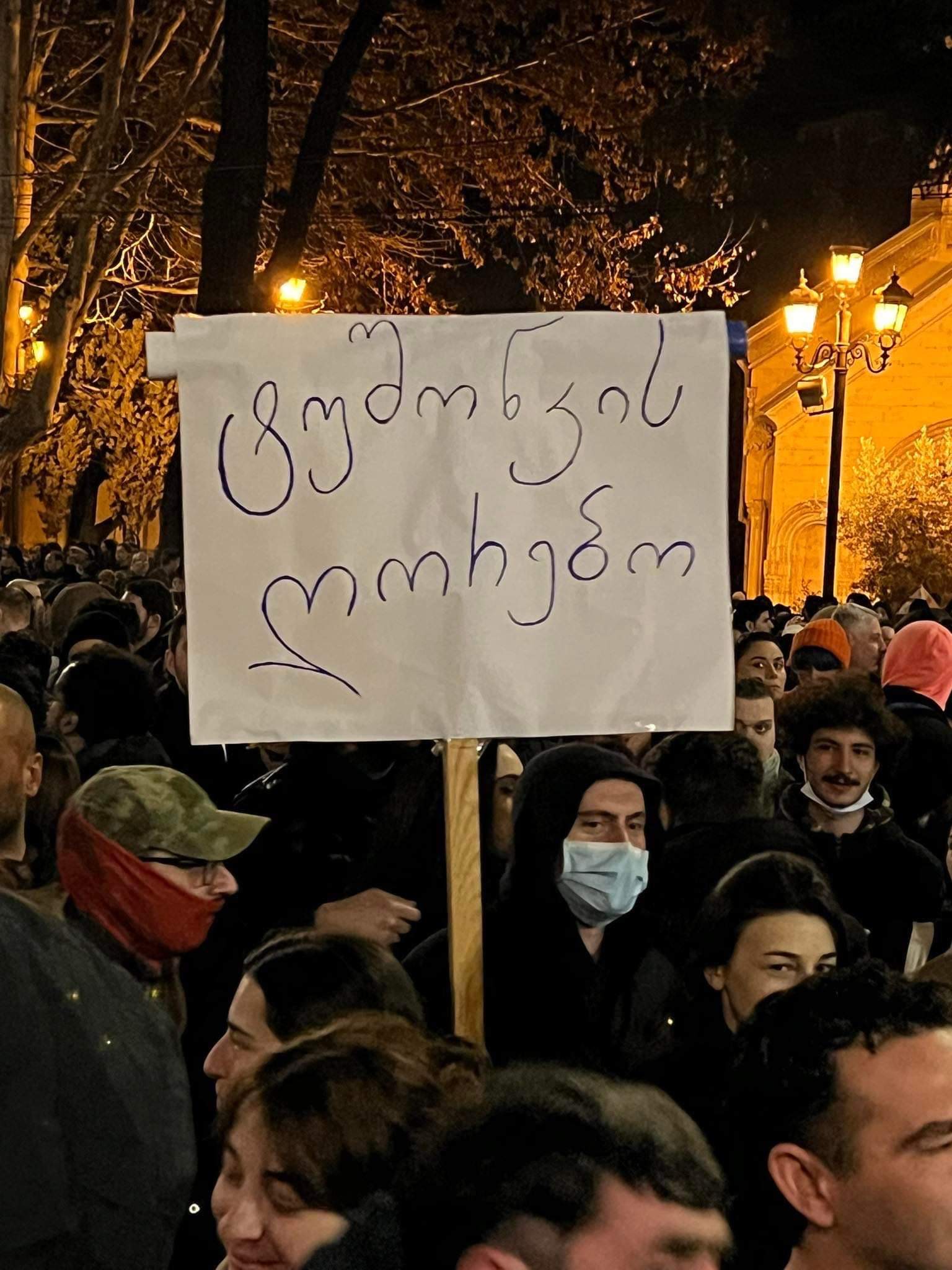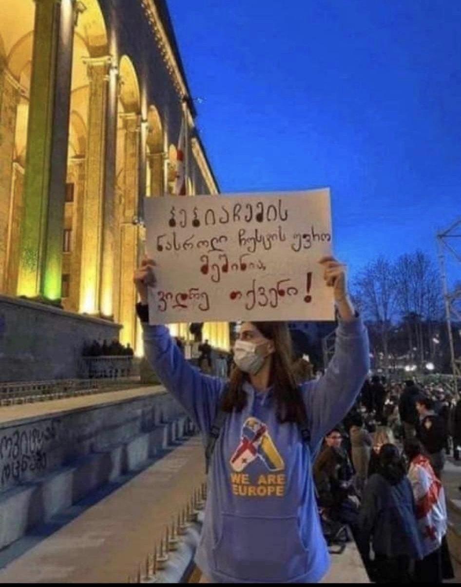ნახეთ სიანტერესო ტრაფარეტები და წარწერები საპროტესტო აქციიდან #არარუსულკანონს
