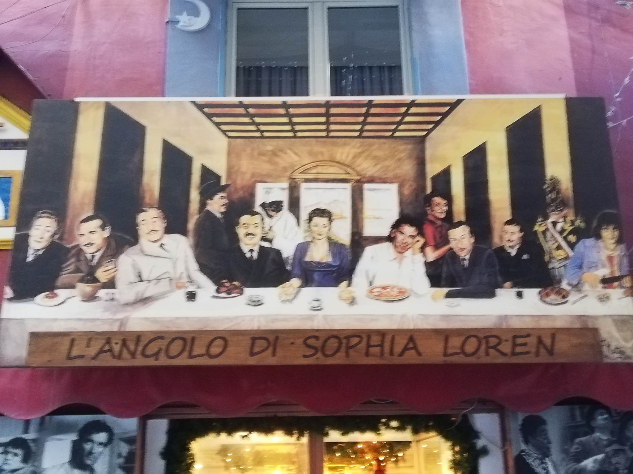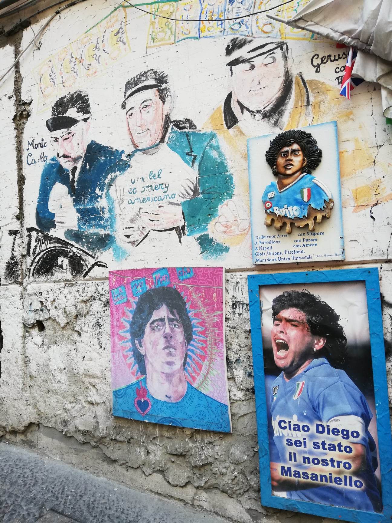 ნეაპოლის პირველი სართული მურალებში და ფოტოებშია გამოწყობილი და ამ არაჩვეულებრივი გამოფენიდან ხვდები, რომ სან ჯენაროს სამფლობელოში სამება მეფობს – დიეგო არმანდო მარადონა; დიდგვაროვანი კომიკოსი ანტონიო გრიფო ფოკას ფლავიო ანჯელო დუკას კომნენო პორფიროჯენიტო გალიარდი დე კურტის დი ბისანზიო. უფრო მოკლედაც შეიძლება – ტოტო; და სოფი ლორენი, ქალღმერთი, რომელიც ნეაპოლში გაიზარდა.