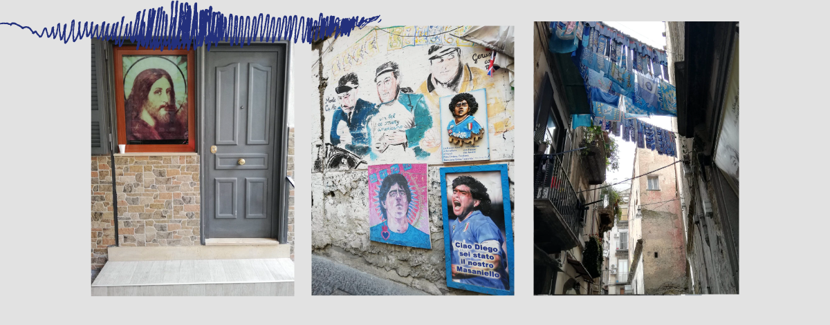 ტურისტული ადგილები ულამაზესია, მაგრამ თუ გინდა, ნეაპოლი გაიგო (ისევე, როგორც ნებისმიერი სხვა ქალაქი), მის სულში უნდა შეძვრე, თითქმის ერთმანეთზე მიდგმულ სახლებს შორის, სადაც გგონია, რომ უცებ კარავაჯო შეგხვდება. სადაც პირველ სართულზე თითქმის ყველა კარი ღიაა და ნეაპოლელი ბებიები დაფუსფუსებენ, გამოდის უგემრიელესი სუნები, ამ ბებიების და მათი უსაქმური შვილიშვილების ჩხუბის და ტელევიზორის ხმა, გაზავებული ნეაპოლიტანური მუსიკით. გარშემო ყველგან, თითქმის ყველა კართან არის ხატები, ელექტროსანთლები და იმ ოჯახების გარდაცვლილთა ფოტოები, ერთმანეთს ენაცვლება თევზის, ნივრის და ჰაშიშის არომატები და სარეცხი. გაუთავებელი სარეცხი, ძირითადად ნაპოლის ფერებში.