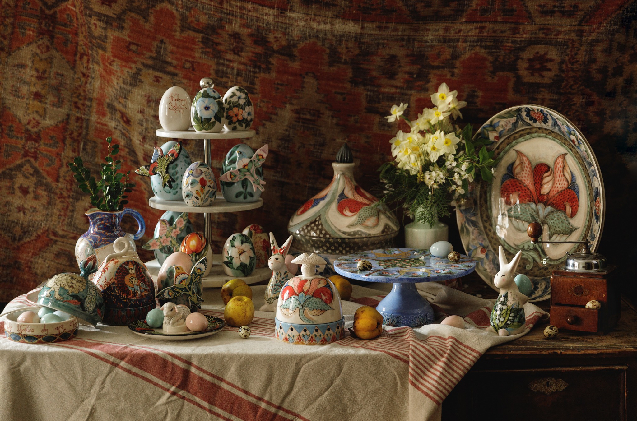 კერამიკის სტუდია Red-ის კოლექცია სააღდგომო თემატიკის ნივთებს თანამედროვე ხელოვნების ნიმუშად აქცევს. თითოეულ ნივთში ორიგინალური მიდგომა და ხასიათი იგრძნობა, რაც თქვენს ინტერიერს აუცილებლად განსაკუთრებულ ესთეტიკას შესძენს. კერამიკული სტუდიის მაღაზია ახალი თეატრის შენობაშია, აღმაშენებლის 127 ნომერში.