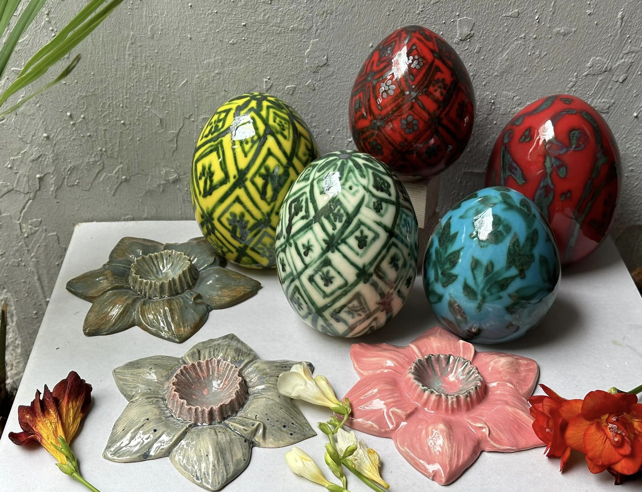 კერამიკის სახელოსნო Crater Ceramic Design სააღდგომო თემატურ ხელნაკეთ ნივთებს წელსაც გვთავაზობს. კოლექციაში ქართული ფრესკებით შთაგონებული სააღდგომო თემატიკის დეკორატიული კვერცხებია წარმოდგენილი. თითოეული ნამუშევარი ხელით იხატება და უნიკალურია. სასურველი ნივთის შეძენა შესაძლებელია Crater Ceramic Design-ის სახელოსნოში, რომელიც ძმები ზუბალაშვილების ქუჩაზე, 19 ნომერში მდებარეობს.