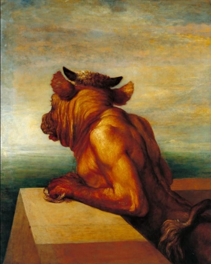 მხატვრები მინოტავრს უფრო მორალური მიზნებისთვისაც იყენებდნენ. სიმბოლისტი მხატვრის, ჯორჯ ფერედიკ უოტსის 1885 წლის ნამუშევარში ურჩხული ზღვას გადაჰყურებს და ყოველწლიურ ნადიმს ელოდება. ამ გამოსახულებით, უოტსი ბრიტანეთში მზარდ ბავშვთა პროსტიტუციას ეხმაურება.
