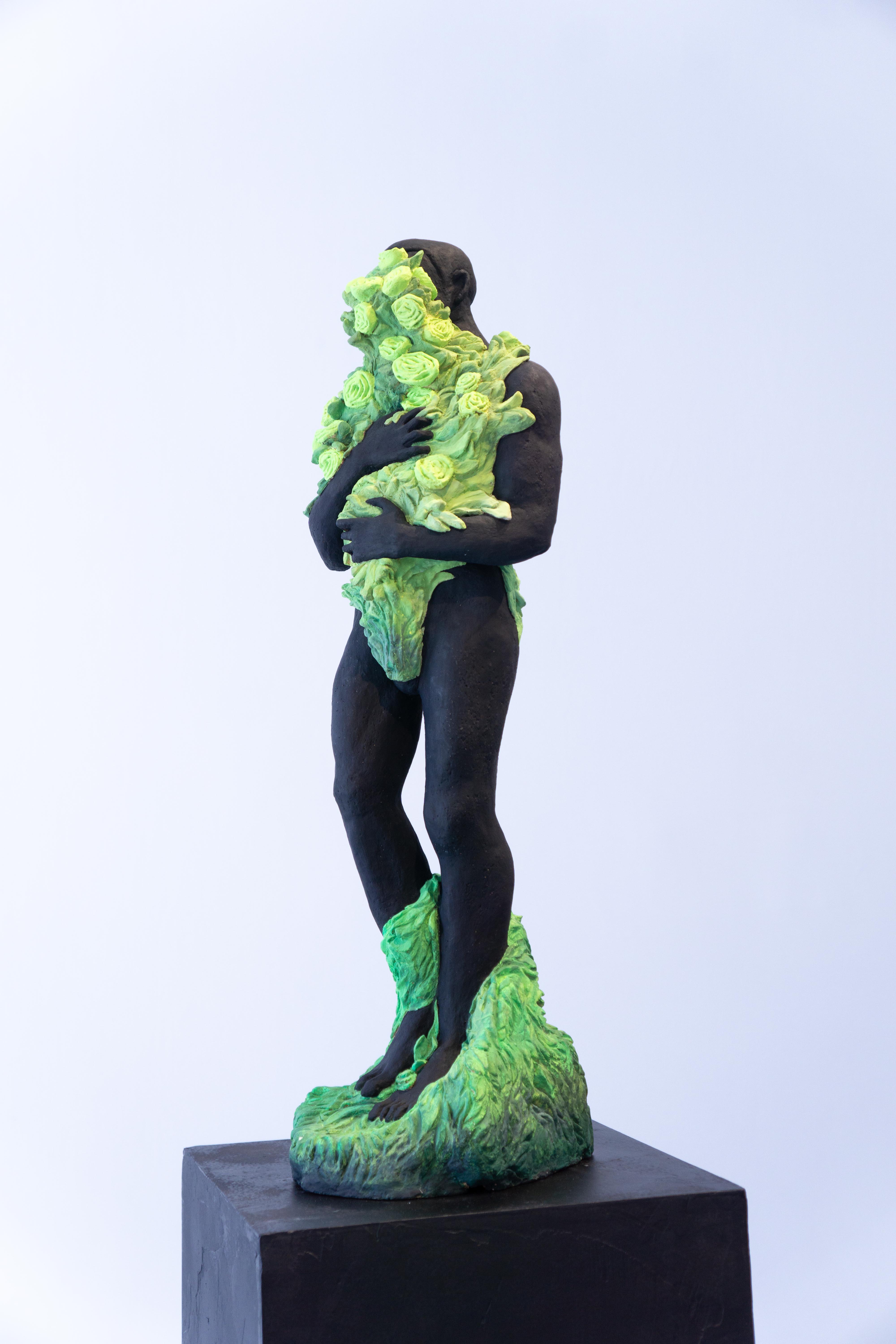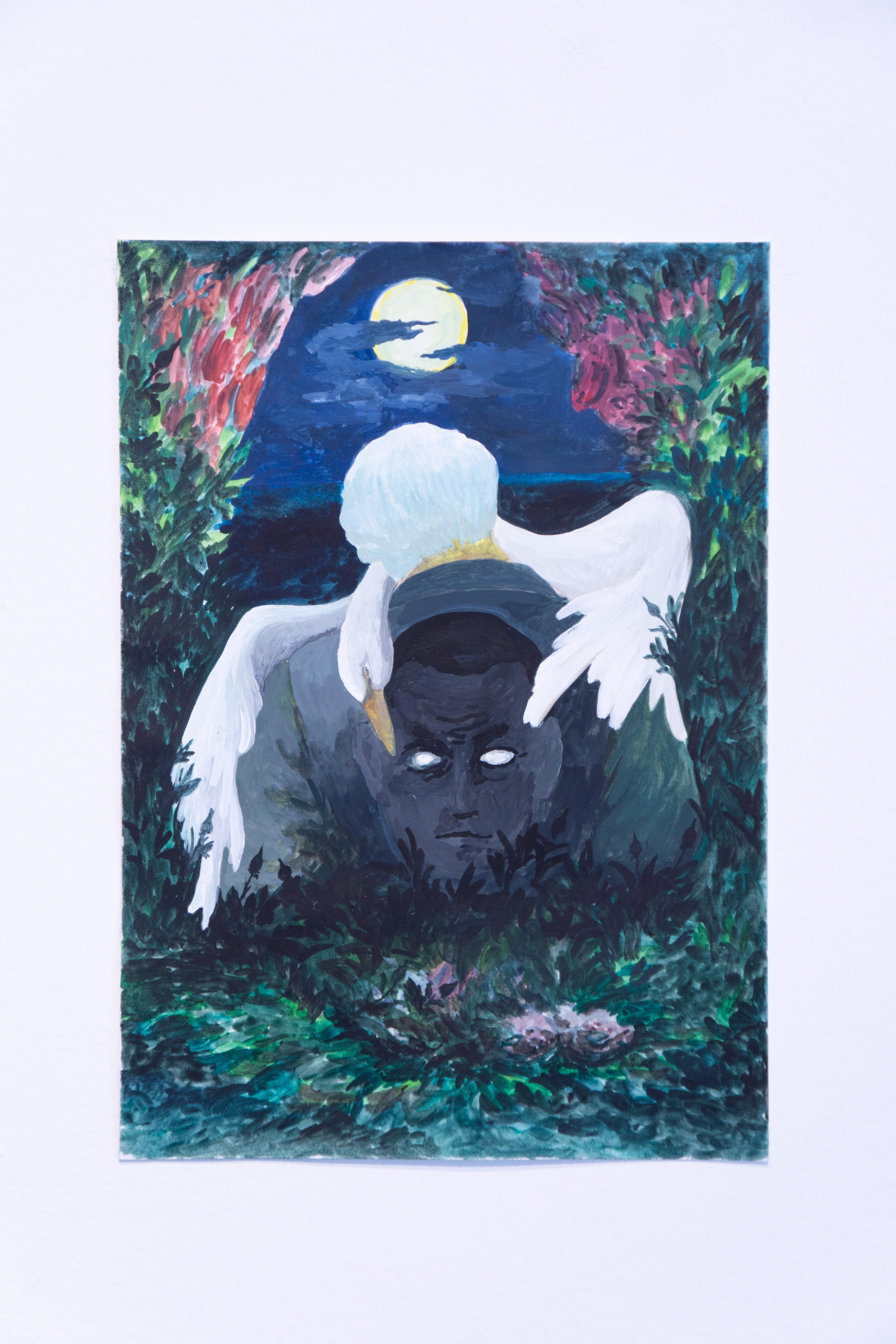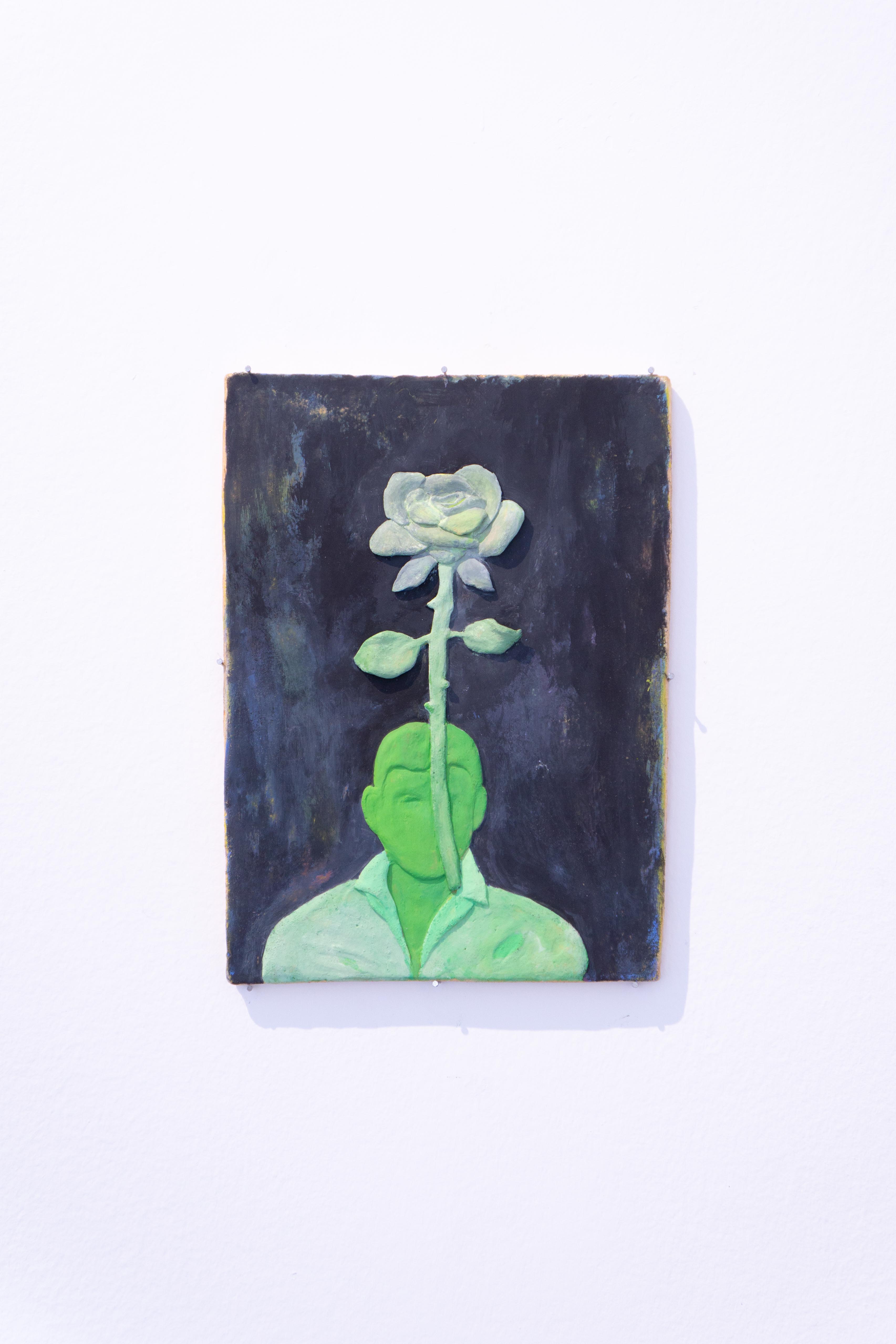 წარმოდგენილ ნამუშევრებში მნიშვნელოვანი ხაზია პორტრეტები, უზარმაზარი, უტრირებული სახეები, რომლებსაც ადამიანები ზურგით დაატარებენ, როგორც მეტაფორას, რაღაც მიღმიერის, დაფარულის და უხილავის, ამ შეგრძნებას კიდევ უფრო ამძაფრებს მწვანე ფერი, რომლის გარშემოც ყველაზე მძაფრად ვითარდება სიუჟეტი და კულმინაციას კერამიკის ფიგურებში აღწევს.