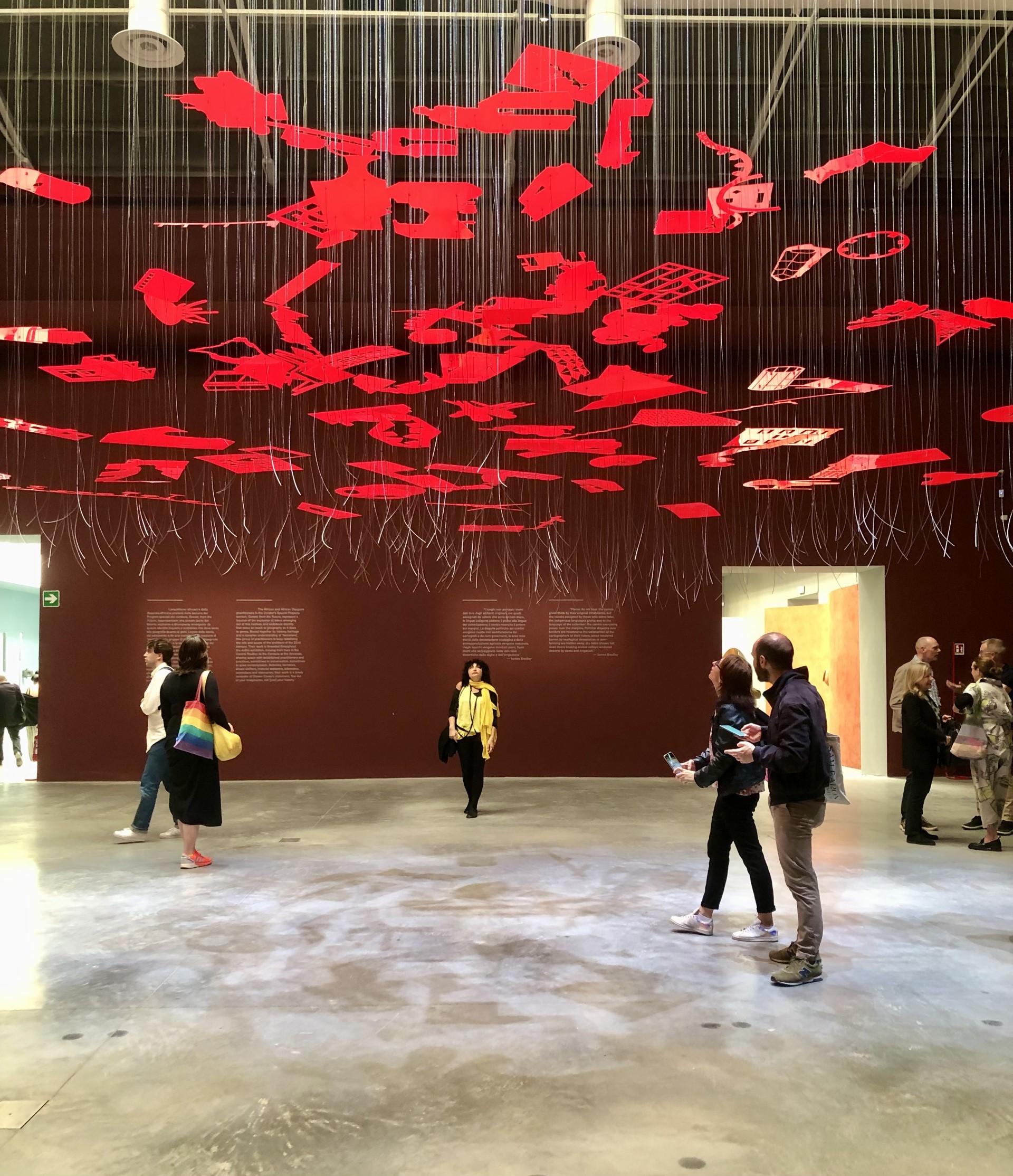 უზარმაზარი გამოფენა – მაკეტები, პროექტები, ნახაზები, ინსტალაციები, ფოტოები, მაგრამ ყველაზე მრავლად პროექცია და ვიდეოგამოსახულება, განსაკუთრებით არსენალეზე, სადაც აგურის უზარმაზარ დარბაზებში, სიბნელის შენარჩუნების მიზნით, დაბინდული მასალით გადატიხრული გასასვლელებია.