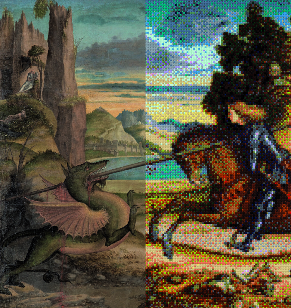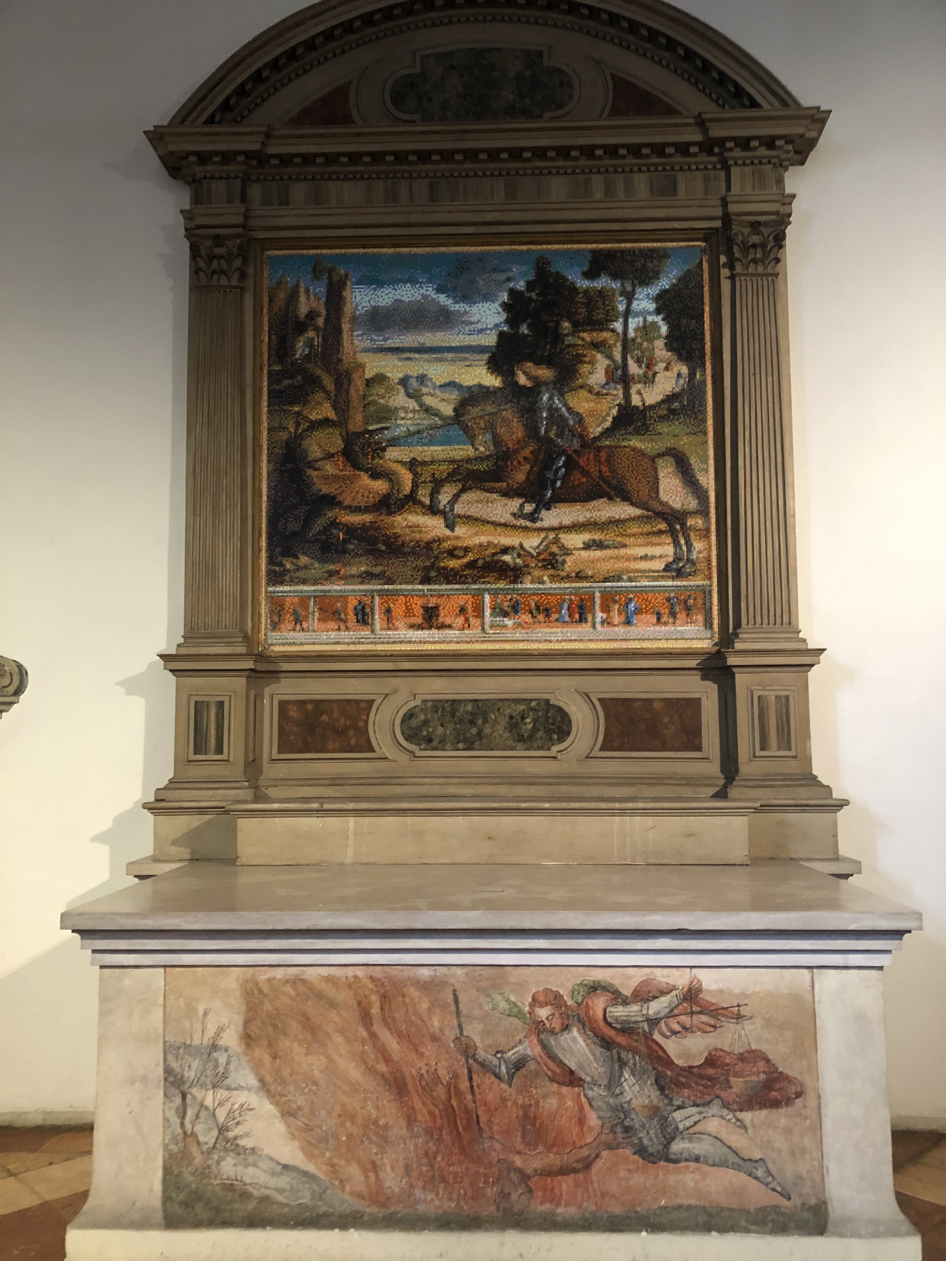 სან ჯორჯო მაჯორეს ბაზილიკაში კი ბენედიქტელი ბერებისა და ჩინელი დისიდენტი მხატვრის, აი ვეივეისთან თანამშრომლობის შედეგია გამოფენილი – მე-16 საუკუნის შედევრის, ვიტორე კარპაჩოს ცნობილი ნამუშევრის თანამედროვე ინტერპრეტაცია – ლეგოს აგურებისგან აწყობილი Untitled (წმინდა გიორგი კლავს დრაკონს).