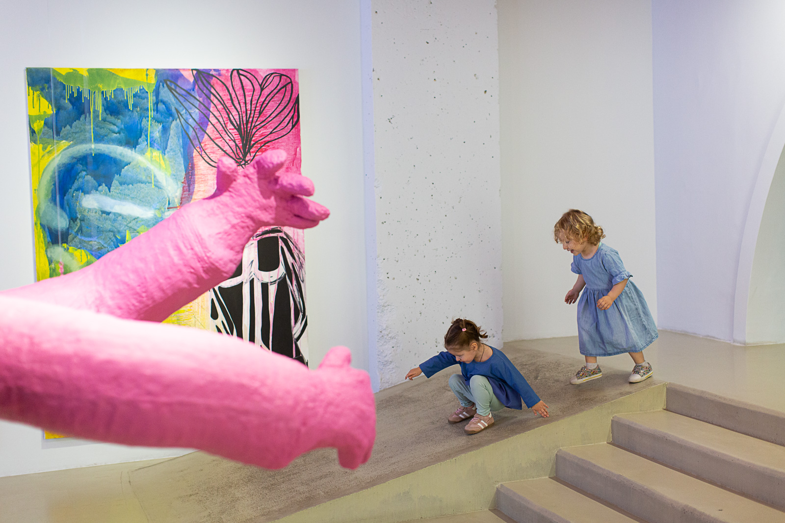 ჩახუტების აქტი გამოფენის ცენტრალურ ნაწილში ხდება, სადაც Crosty Art Center-ის საგამოფენო სივრცის შუაში გიგანტური მკლავებია ჩამოკიდებული, ისინი ნახევარ წრეს ქმნიან და მნახველებს ჩასახუტებლად ელიან. ეს ნესტან მიქელაძის გამოფენაა. გიგანტური ხელები პლასტიკისგანაა დამზადებული და მკვეთრი ვარდისფერი ფერი აქვს, მთლიანობაში ეს ვიზუალი ბავშვის მიერ შექმნილ პლასტილინის სკულპტურას მოგაგონებთ. ინსტალაციას „ჩახუტება“ ჰქვია. ეს მიქელაძის პირველი სამგანზომილებიანი ნამუშევარია.