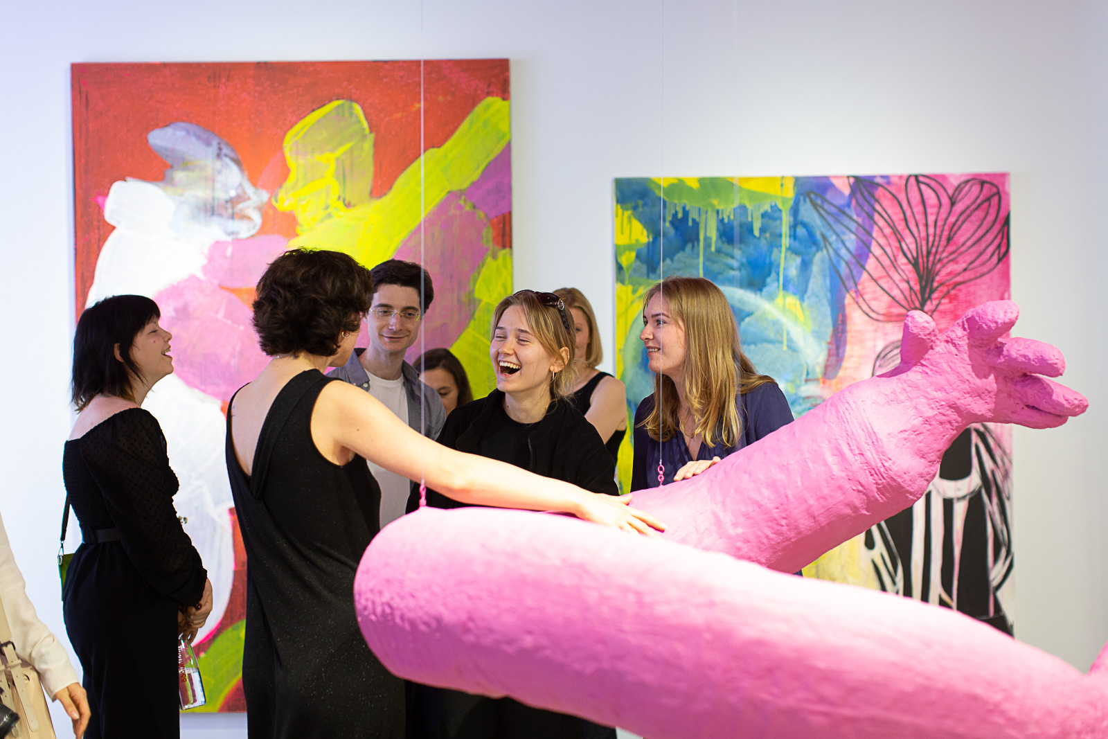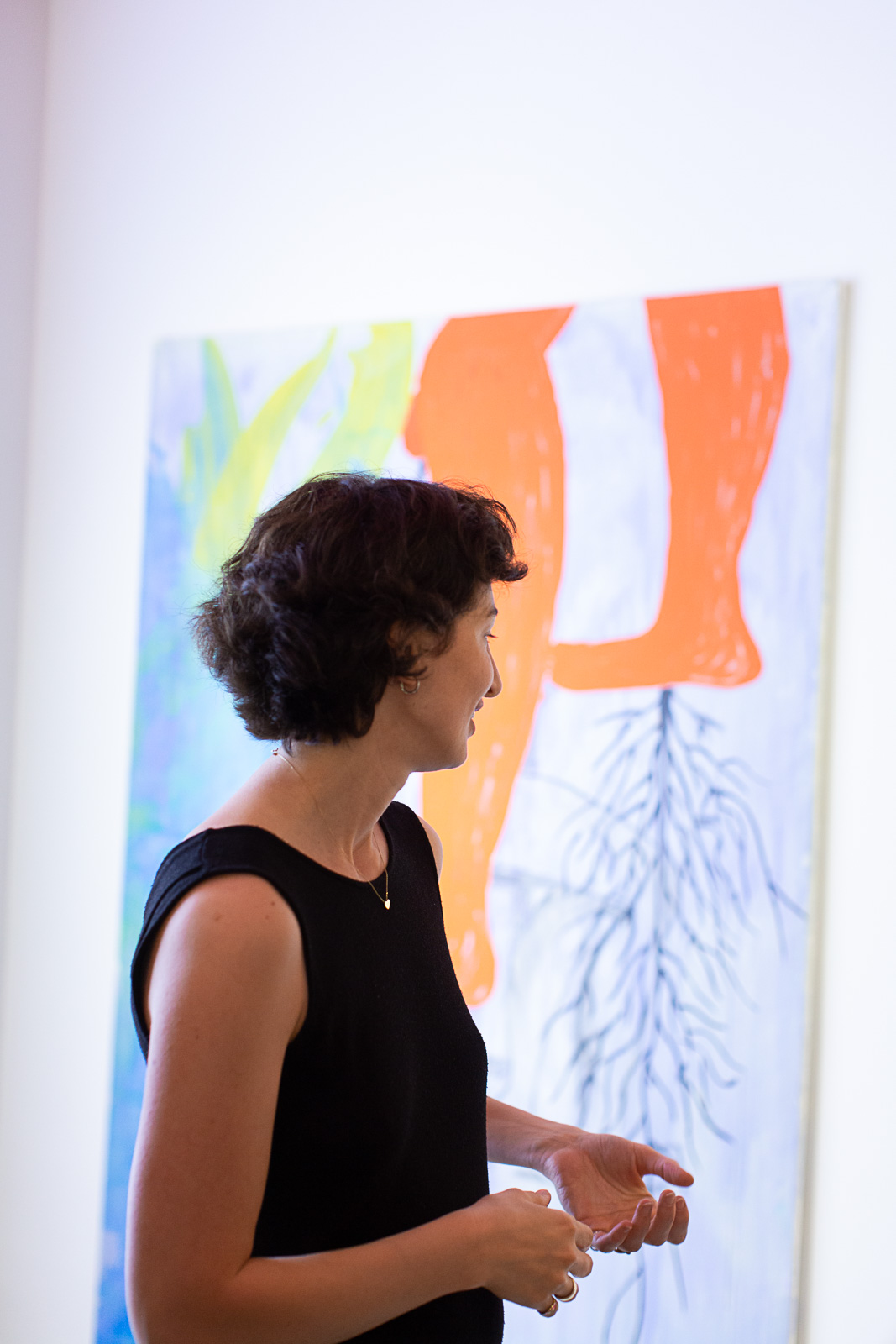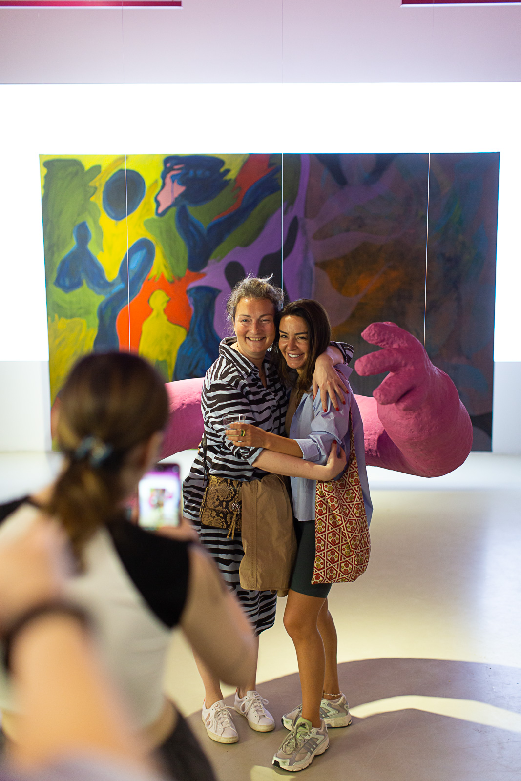 სკულპტურას გარს აკრავს ზეთის საღებავებით შესრულებული ნახატები, ნაწილობრივ აბსტრაქტული ადამიანის ფიგურებით. უფრო ადრინდელი ნახატი, 2017 წლის, „მე შენ ჩაგიკრავ“ ასახავს ორ ფიგურას, რომლებიც ერთმანეთს ეკვრიან.