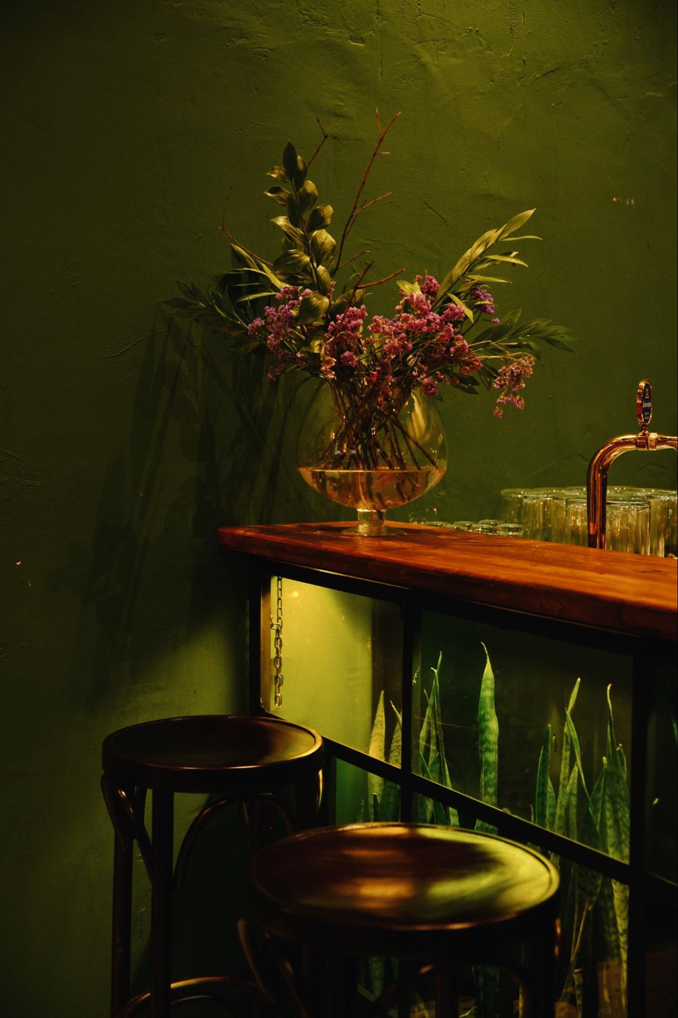 პატარა, საყვარელი სკვერი რესტორანს დამატებით ხიბლს ანიჭებს, მისი ინტერიერი კი მწვანე ფერთა გამასთან შერწყმულ მცენარეებთან კარგადაა კომბინირებული. თუმცა, რესტორნის მთავარი იდეა ხაშს უკავშირდება, სწორად აქედან შეირჩა სახელწოდებაც – “ხაშ-ხაში”.