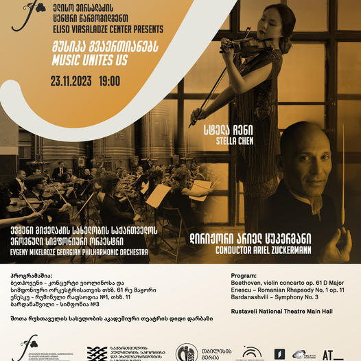 23 ნოემბერს, 19:00 საათზე შოთა რუსთაველის სახელობის აკადემიური თეატრის დიდ დარბაზში შედგება კონცერტი „მუსიკა გვაერთიანებს“. საღამო ეძღვნება ქვეყნის სახელმწიფოებრიობისთვის მებრძოლ ყველა ადამიანს და ხორციელდება „ელისო ვირსალაძის ცენტრის“ ორგანიზებით, საქართველოს კულტურის, სპორტისა და ახალგაზრდობის სამინისტროს და თბილისის მერიის მხარდაჭერით.