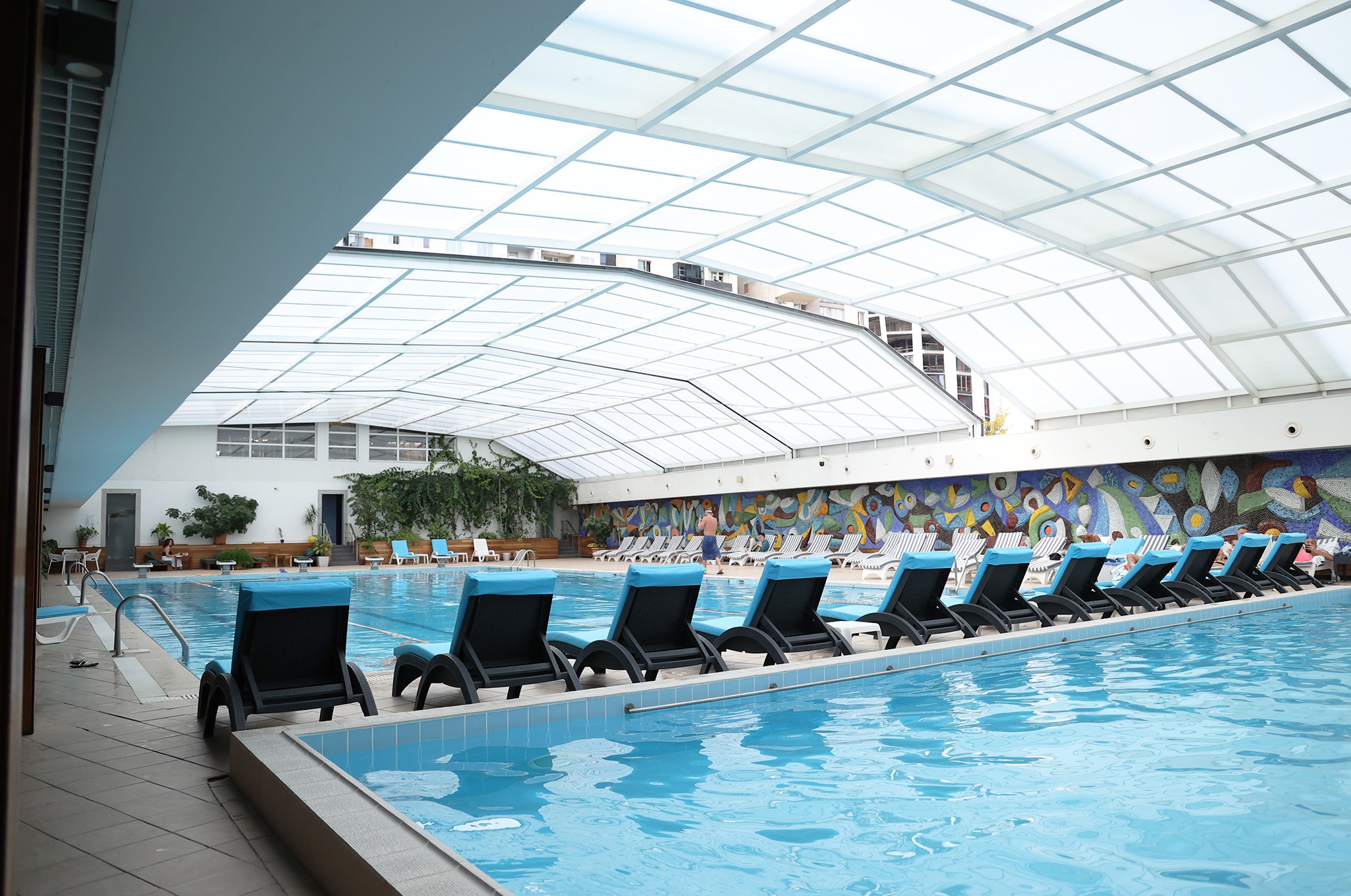 დაწესებულება აერთიანებს 2 საცურაო აუზს, სატრენაჟორო და ფიტნესდარბაზს, მშრალ და ორთქლის საუნას და გასარუჯ ვერანდას. შეგიძლიათ ისარგებლოთ აკვა ფიტნესით და ასევე სტუდიური ვარჯიშებითაც. სპორტკომპლექსის დიდი აუზი მოძრავი გადახურვის მეშვეობით სეზონურად, გარკვეული პერიოდი დახურულია, ხოლო თბილი ამინდების დადგომასთან ერთად ღია აუზად ტრანსფორმირდება.