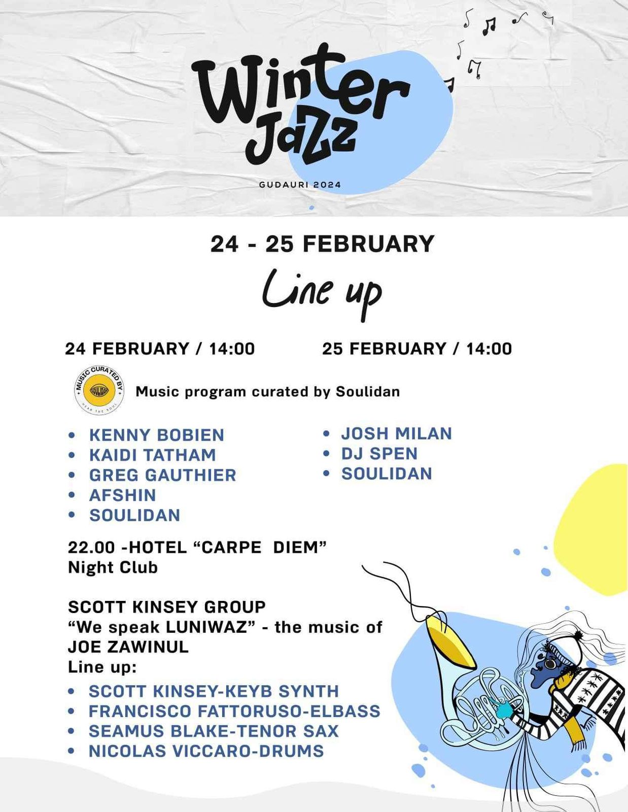 24 – 25 თებერვალს, გუდაურში, სასტუმრო კარპე დიემსა და მის მიმდებარე ტერიტორიაზე, ფესტივალი Winter Jazz 2024 გაიმართება.