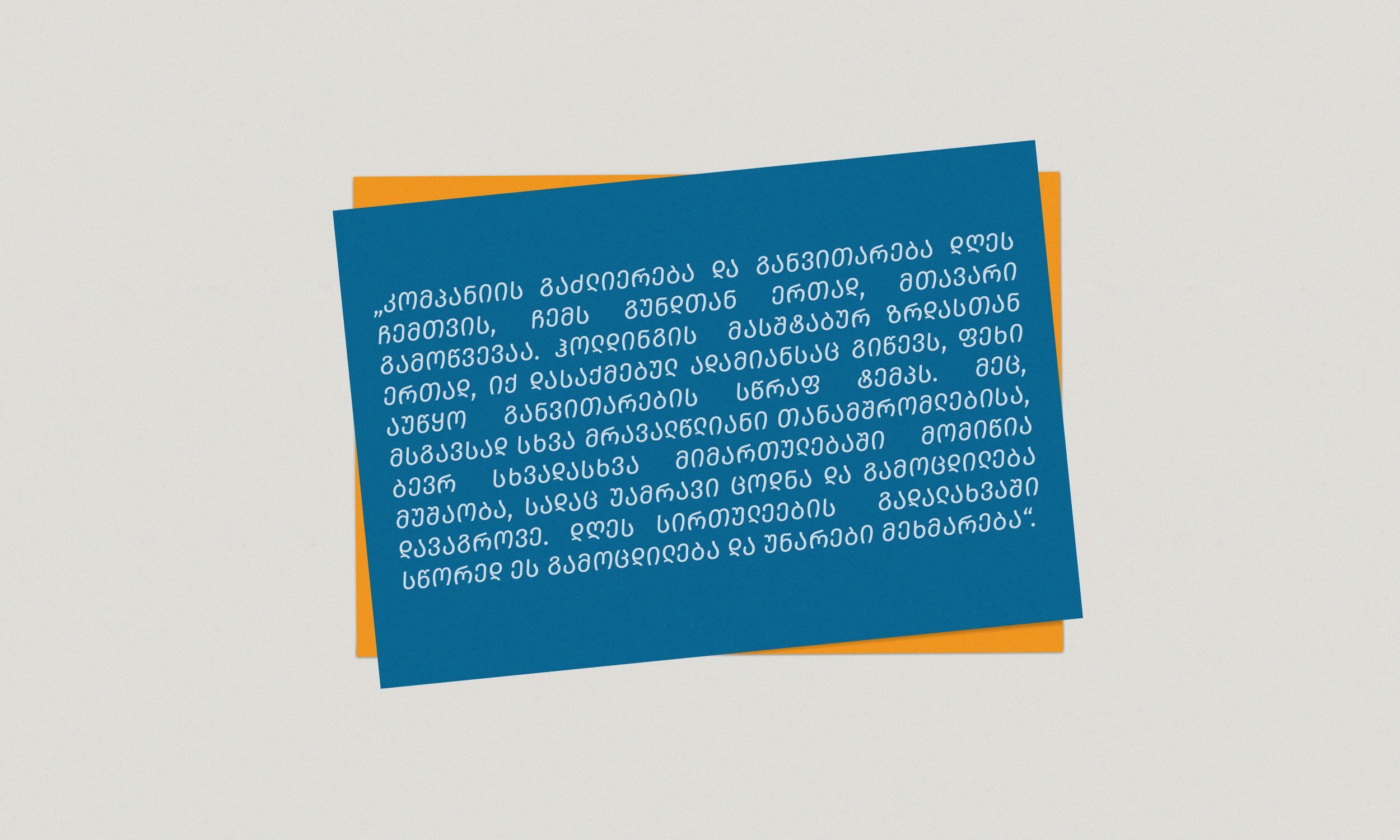 „თეგეტა ჩემი პირველი და დღემდე არსებული სამსახურია. ჩემ მიერ ამ წლებში დაგროვილი მთელი გამოცდილება და განვითარების ყველა ეტაპი ამ ჰოლდინგს უკავშირდება“.