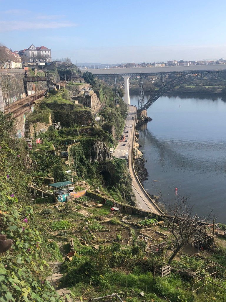 მაგრამ სანაპირომდე, ბაღებსა და მდინარეს შორის კლდეზე ჩასეირნება თუ არ დაგეზარება, იქნებ პალეტების სავარძლებით მოწყობილ მოსასვენებელ სივრცესაც მიაგნო, რომლის შორიახლოსაც არ გაგიკვირდეს კარვებში დაბანაკებულ თავქარიან მოგზაურებსაც თუ დაინახავ. ამ ადგილას კიდევ უფრო სიმშვიდისმომტანი და საამოა წამოჯდომა და მდინარის ყურება, მეგობრებთან ერთად დროის გატარება; კლუბში დათენებული ღამის შემდეგაც შეგიძლია აქ დაელოდო მზის ამოსვლას. მარცხნივ მარია პიას ხიდია, რომელსაც შეხედავ თუ არა, მაშინვე მიხვდები, ვისი ნამუშევარია. 1877 წელს გუსტავ ეიფელის მიერ აგებული ეს ხიდი ერთ-ერთი პირველი დიდი პროექტია არქიტექტორის კარიერაში, თავად ქალაქში კი პირველი ხიდია: ვიწრო, კოხტა და მშვენიერი, რომელიც დღეს აღარ ფუნქციონირებს და პორტუს დეკორაციად აქვს შემოტოვებული. მომწონს იმაზე ფიქრი, რომ ფუნქციაგამოცლილი არქიტექტურა შეიძლება ლამაზ, საიმიჯო გაფორმებად გადაიქცეს და მაინცდამაინც ფინანსურ სარგებლიანობაზე ფიქრით არ დაიტვირთოს.