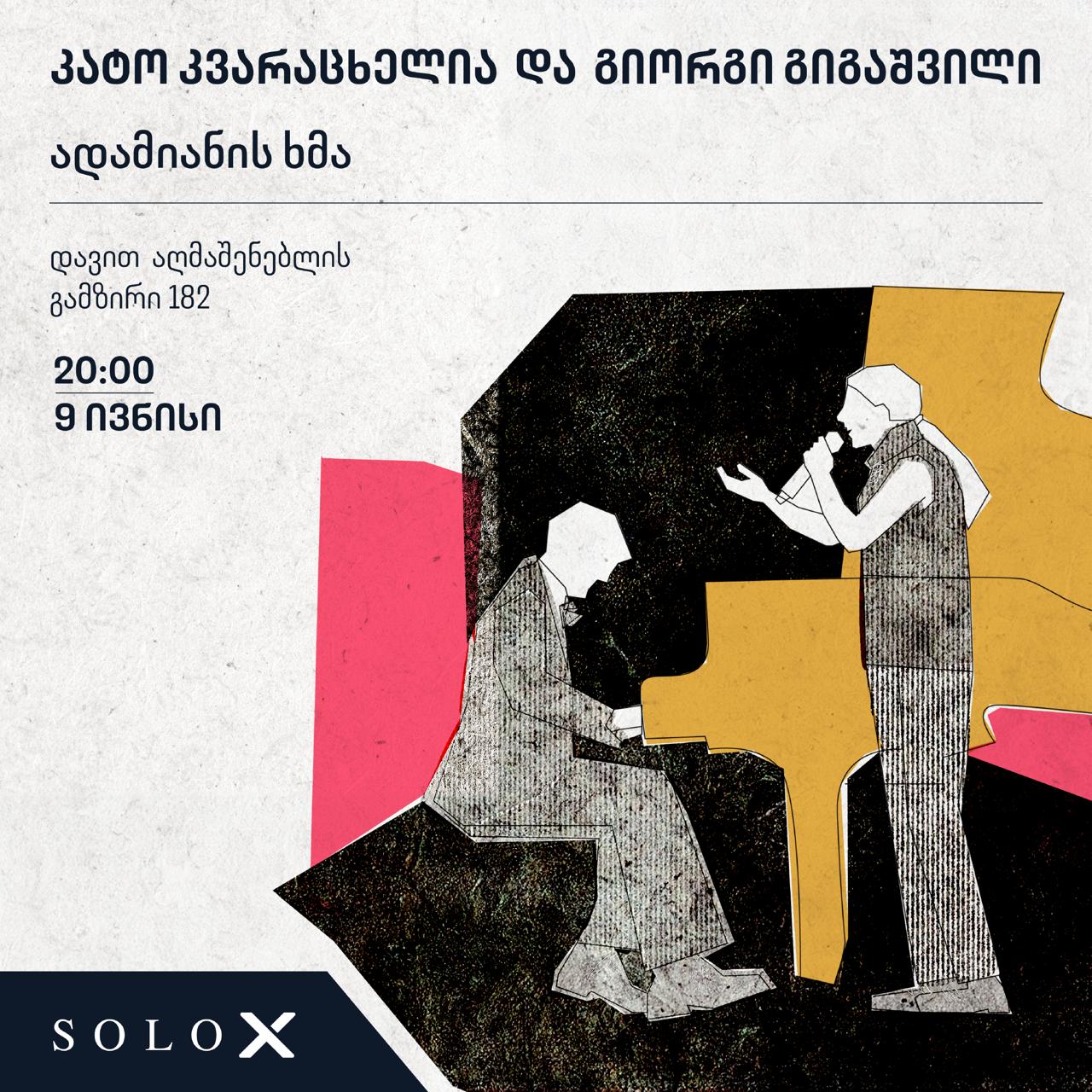 9 ივნისს, SOLO X-ის მხარდაჭერით გაიმართება კატო კვარაცხელიასა და გიორგი გიგაშვილის კონცერტი “ადამიანის ხმა”.