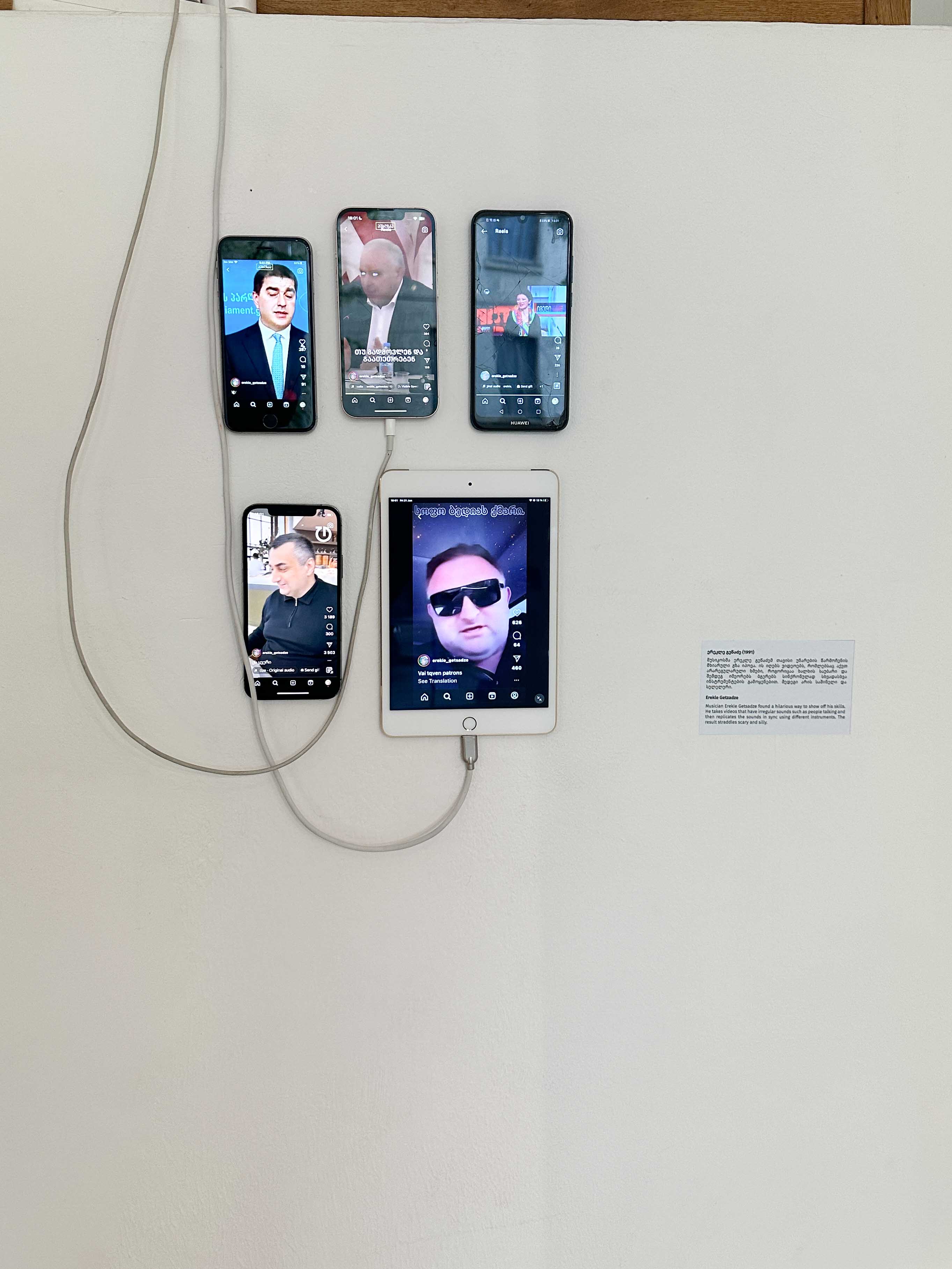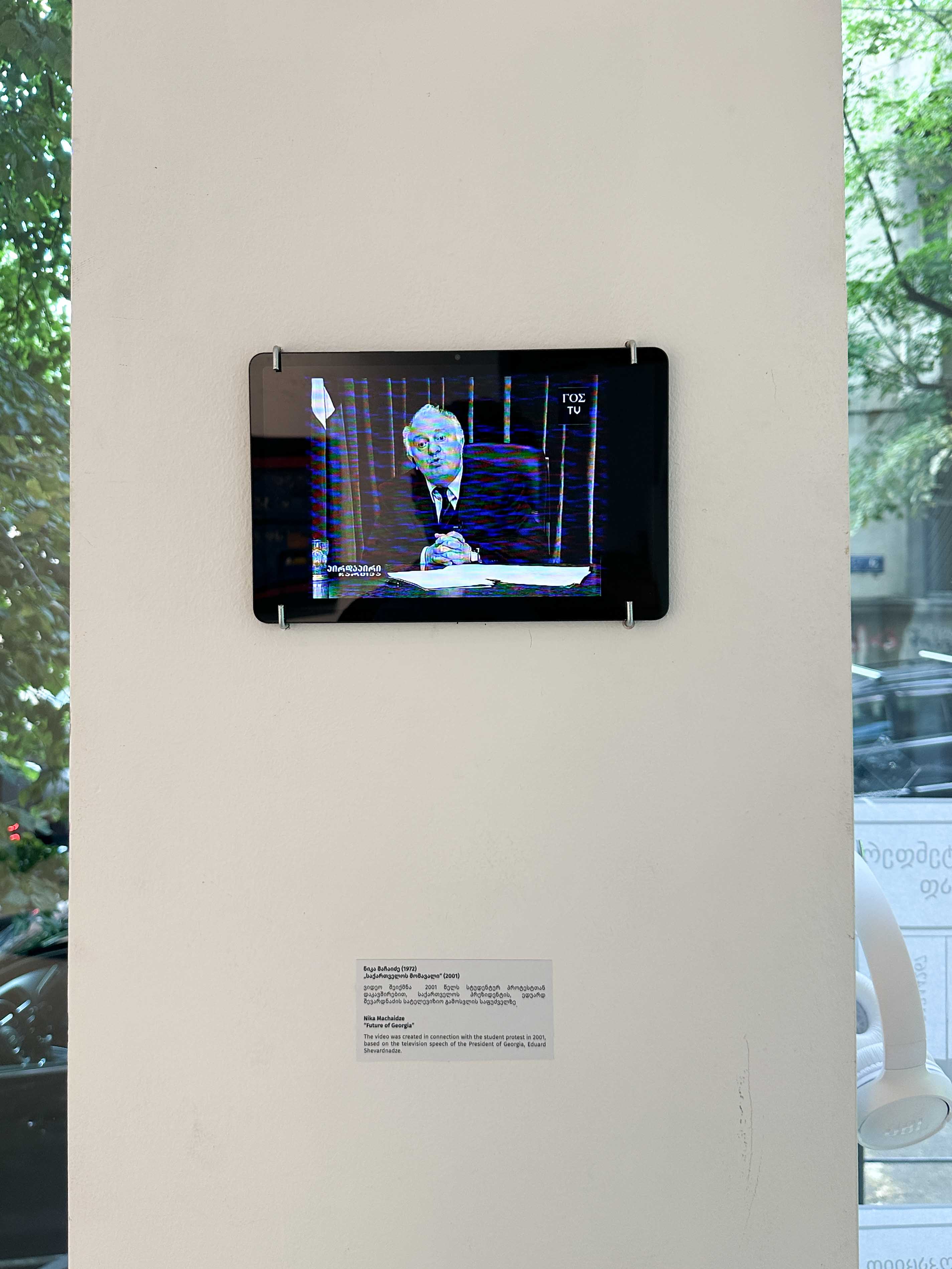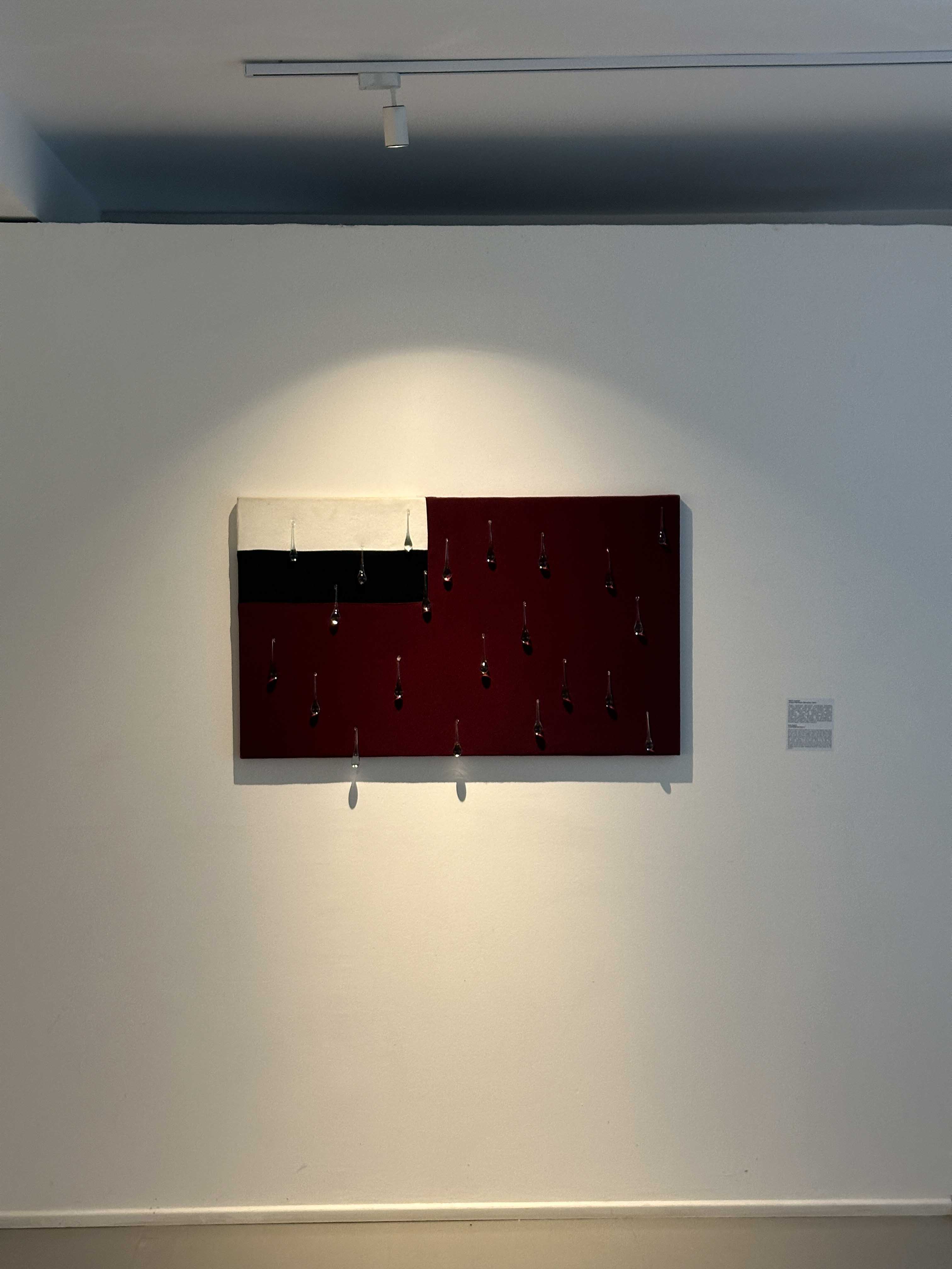 ისე როგორც ყველაფერი სამყაროში, ხელოვნებაც პოლიტიკურია. ეს გამოფენაც მკაფიოდ სახალხო, ეროვნული ნარატივის გამტარია და მიხარია, რომ ჩემი ნამუშევარიცაა ერთ-ერთი ხელოვანების ამ პოლიფონიაში. 2020 წელს შექმნილი ნამუშევარი “მოკლე ისტორიული მეხსიერება“, ძველ, სამფეროვან დროშაში სპეციალურად დაშვებულ შეცდომაზეა აგებული. ეს დროშა რამდენიმე წლის წინ შეიცვალა, მაგრამ დამთვალიერებლის 95% ვერ ამჩნევს შეცდომას ნამუშევარში. ეს მცირე, მაგრამ მკაფიო შეცდომა ქვეყნის მთავარ სიმბოლოში დასაშვებს ხდის, რომ არ გვახსოვდეს უახლოესი ისტორიული ფაქტებიც და ეს ბადებს ბუნებრივ განცდას, რომ იგივე შეცდომებს ვუშვებთ, წინ ვერ მივდივართ, ვიტკეპნებით, ცრემლებიც ამიტომაა ნამუშევარზე.”
