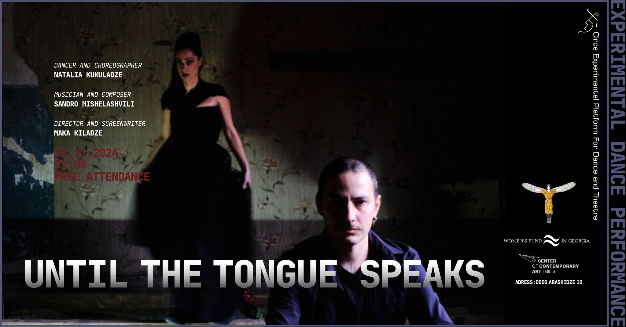 21 ნოემბერს, 9 საათზე დოდო აბაშიძის 10 ნომერში “კირკე” – ცეკვის და თეატრის ექსპერიმენტული პლატფორმა “ქალთა ფონდის” დაფინანსებით წარმოგიდგენთ პერფორმანს ”იქამდე, სანამ ენა არ იტყვის”.