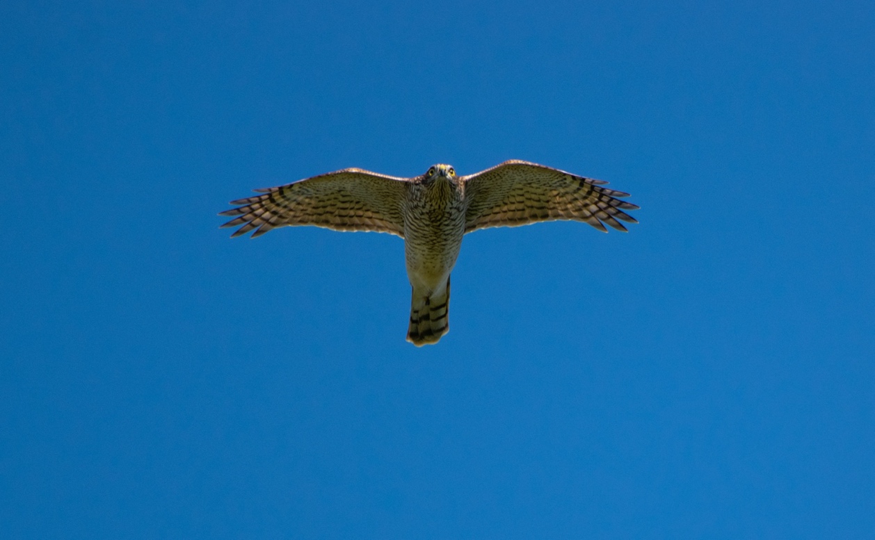 ფრთები შავ-თეთრად აქვს დაწინწკლული. მდედრი უფრო დიდია, ვიდრე მამრი. მამრს უფრო მომცრო ფორმის თავი აქვს მოწითალო ღაწვებითა და ლოყებით. მკერდი დაწინწკლულია. კუდისქვეშ ბუმბული – თეთრი. იკვებება მცირე ზომის ფრინველებით.უპირატესობას ანიჭებს ტყიან ჰაბიტატებს. გვხვდება აგრეთვე პარკებსა და ტყეპარკებში. თბილისში ბინადრობს 9 აპრილის პარკში.