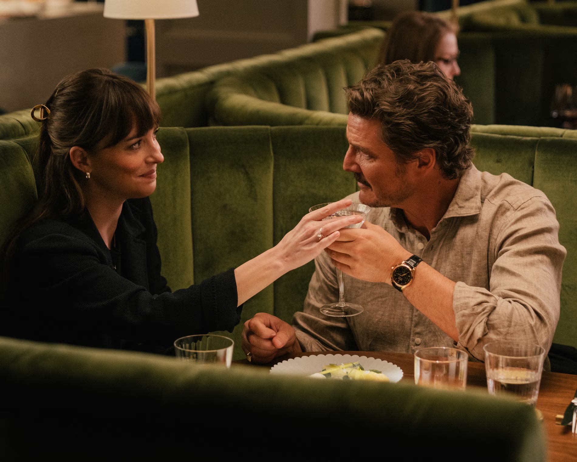 კატასტროფულ “Madam Web”-ში მთავარი როლის თამაში დაკოტა ჯონსონისთვის შოკური თერაპიის მსგავსი გამოცდილება იყო და ის დაუბრუნდა პატარა პროდაქშენს. „მატერიალისტებში“ ის თამაშობს ამერიკელ ხანუმას, ლუსის, რომელიც მაჭანკლობით პურის ფულს შოულობს. თავად სელინ სონიც ერთ დროს ამ პროფესიით იყო დაკავებული.