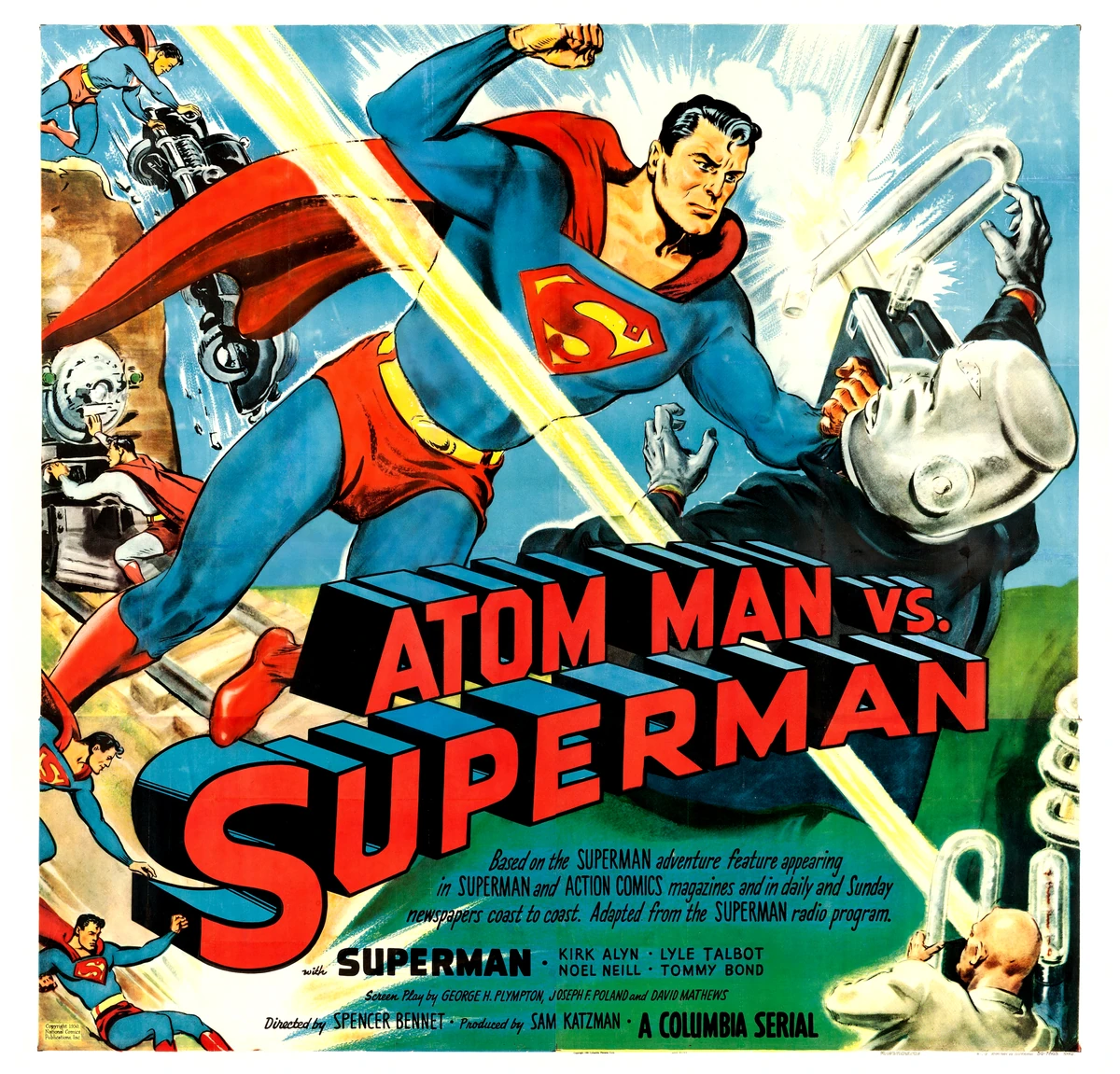 ეკრანებზე სუპერმენის თავგადასავალი 1948 წელს იმავე სახელწოდების სერიალით დაიწყო. კლარკ კენტის როლში კირკ ელინი იყო. ამ სერიალმა ფაქტობრივად შექმნა სუპერგმირული კინოს ბაზა, საიდანაც მომავალში წარმოიშობა თანამედროვეობის ყველაზე მოთხოვნადი ჟანრი. 15-სერიანმა საგამ კინოთეატრებში იმხელა წარმატებას მიაღწია, რომ ორი წლის შემდეგ სიქველიც გამოვიდა Atom Man vs. Superman. მაგრამ სიქველმა ვერ გაამართლა და სუპერმენის სახე კინოეკრანებიდან მრავალი წლით გაქრა.