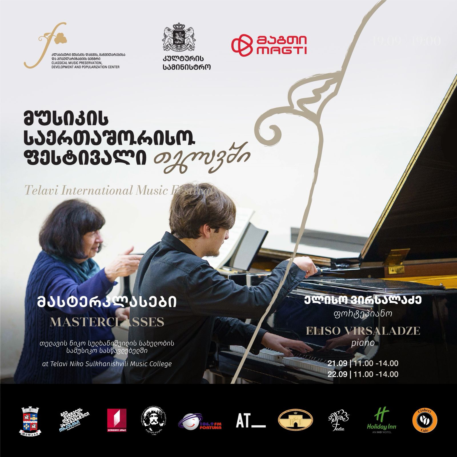 19-25 სექტემბერს, მუსიკის საერთაშორისო ფესტივალს თელავში კლასიკური მუსიკის ცენტრის ორგანიზებით და საქართველოს კულტურის სამინისტროს მხარდაჭერით გაიმართება. საფესტივალო საღამოებზე მსმენელის წინაშე წარდგებიან ელისო ვირსალაძე, დავიდ ოისტრახის კვარტეტი, პიანისტი ფილიპ ლინოვი, ვიოლონჩელისტი იბაი ჩენი, გორის ქალთა კამერული გუნდი, სამხატვრო ხელმძღვანელი და დირიჟორი – თეონა ცირამუა, დირიჟორები მირიან ხუხუნაიშვილი და კახი სოლომნიშვილი, გია ყანჩელის სახელობის თბილისის ახალგაზრდული ორკესტრი, ზაქარია ფალიაშვილის სახელობის ცენტრალური სამუსიკო სკოლის – ნიჭიერთა ათწლედის – მოსწავლეები.