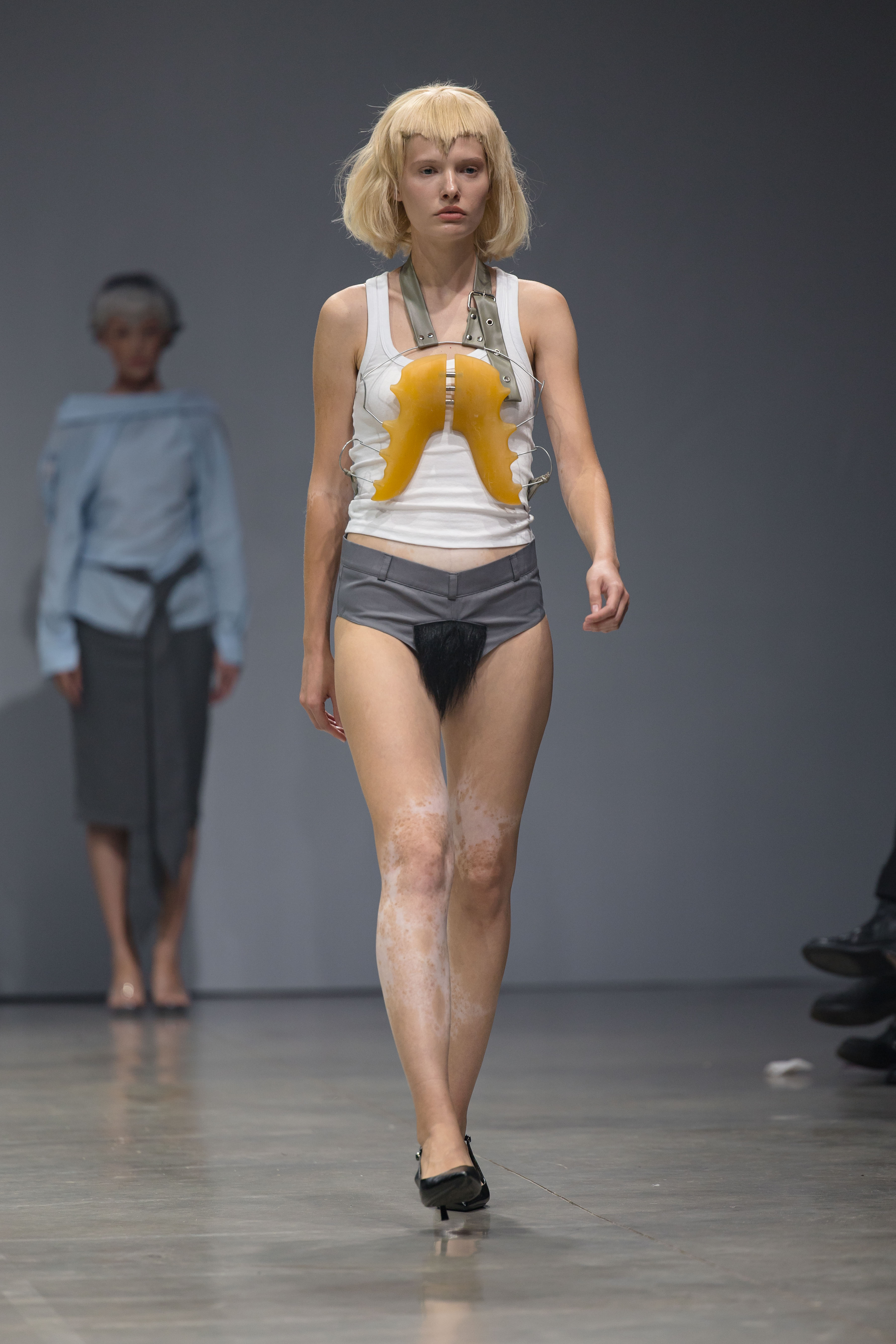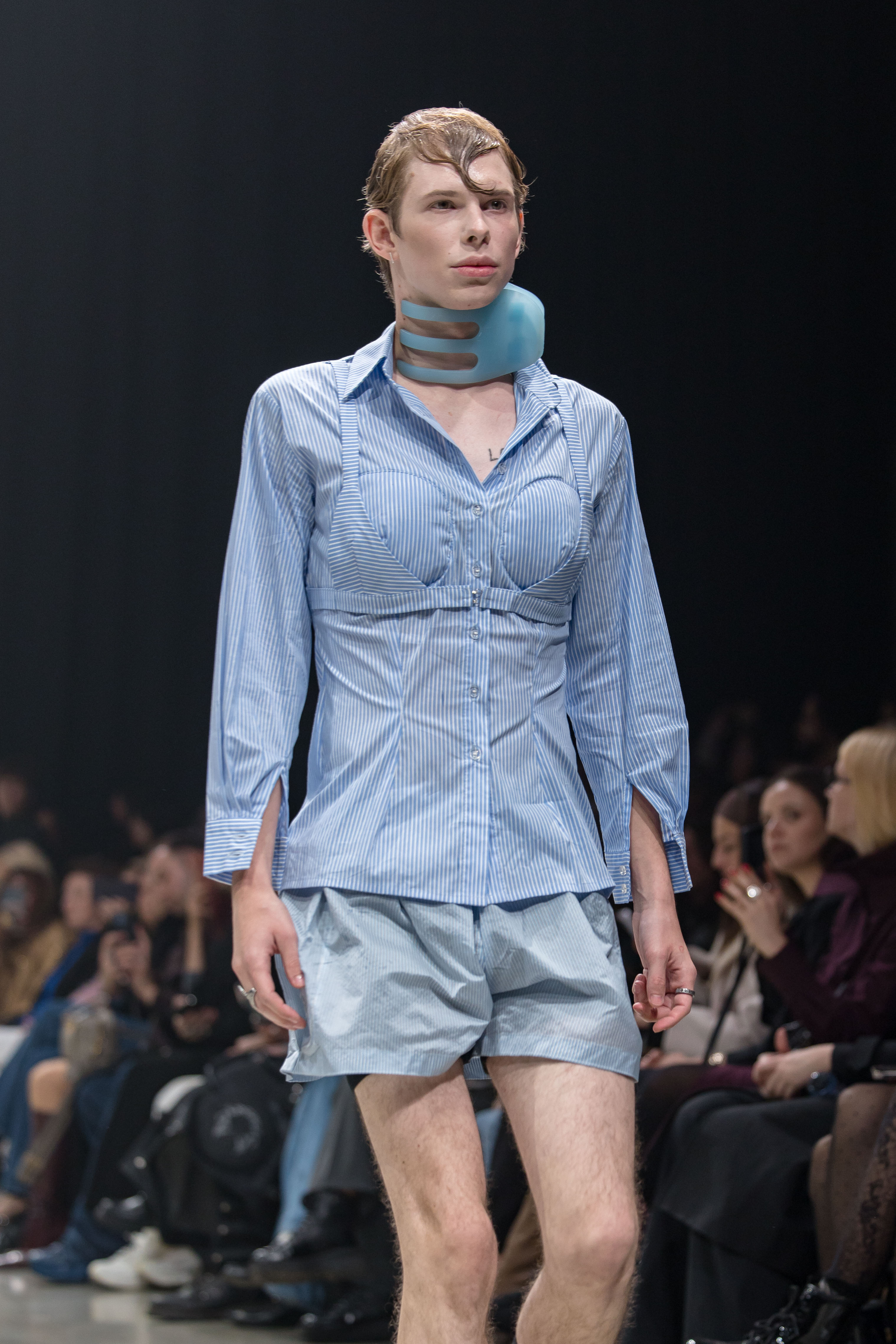 ამავდროულად, ჩემმა ქვეყანამ ახლახან მიიღო ანტილგბტ კანონი და ეს კოლექცია ამ კლიმატს ეხმიანება. მთელი შოუ წარმოიდგინა, როგორც გამოგონილი პოლიტიკური პარტია, სადაც ქვიარ ადამიანი ხდება პრეზიდენტი. ამ ხედვის მოლდოვაში წარდგენა სწორ ადგილას მეჩვენებოდა, რადგან ის ეხმიანება თავისუფლებასა და რეპრესიებს შორის ბრძოლას, რომელიც ორივე ქვეყანამ ასე კარგად იცის.”