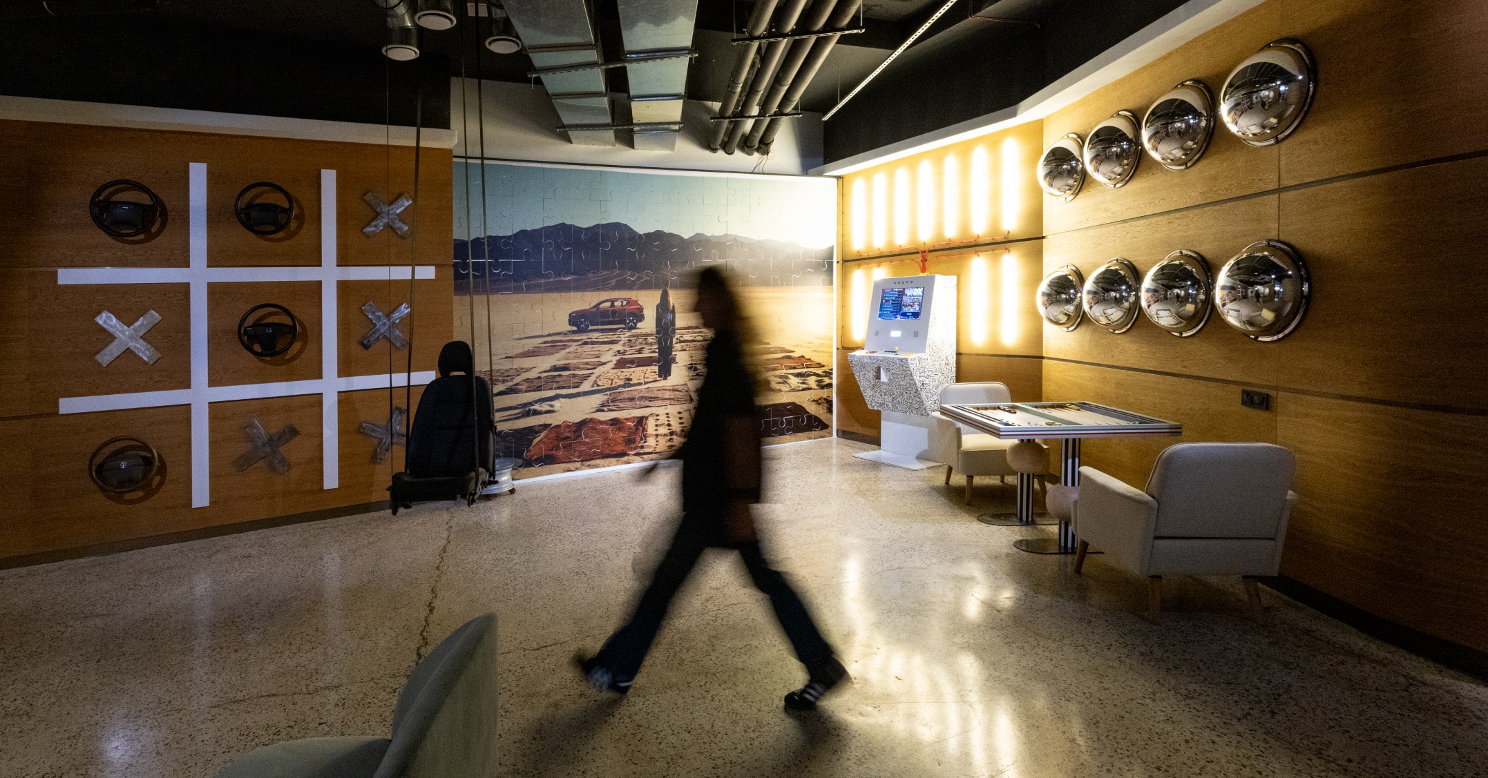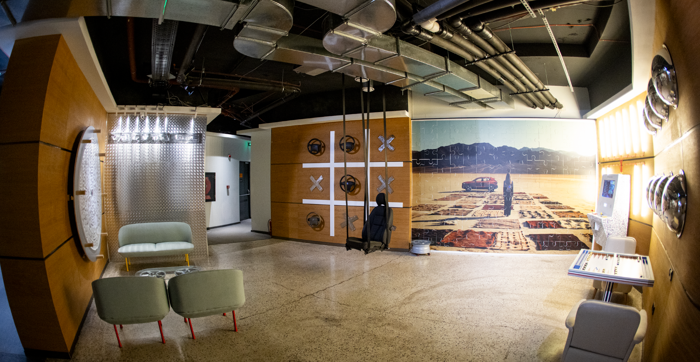 ლაუნჯში განთავსებულია ინტერაქტიური ინსტალაციები, თამაშები და ის დიზაინერული ელემენტები, რომლებიც კომფორტთან ერთად შემოქმედებით ენერგიასა და ისეთივე უსაფრთხო და მყუდრო გარემოს ქმნის, როგორიც თავად „ვოლვოს“ ფილოსოფიაა.