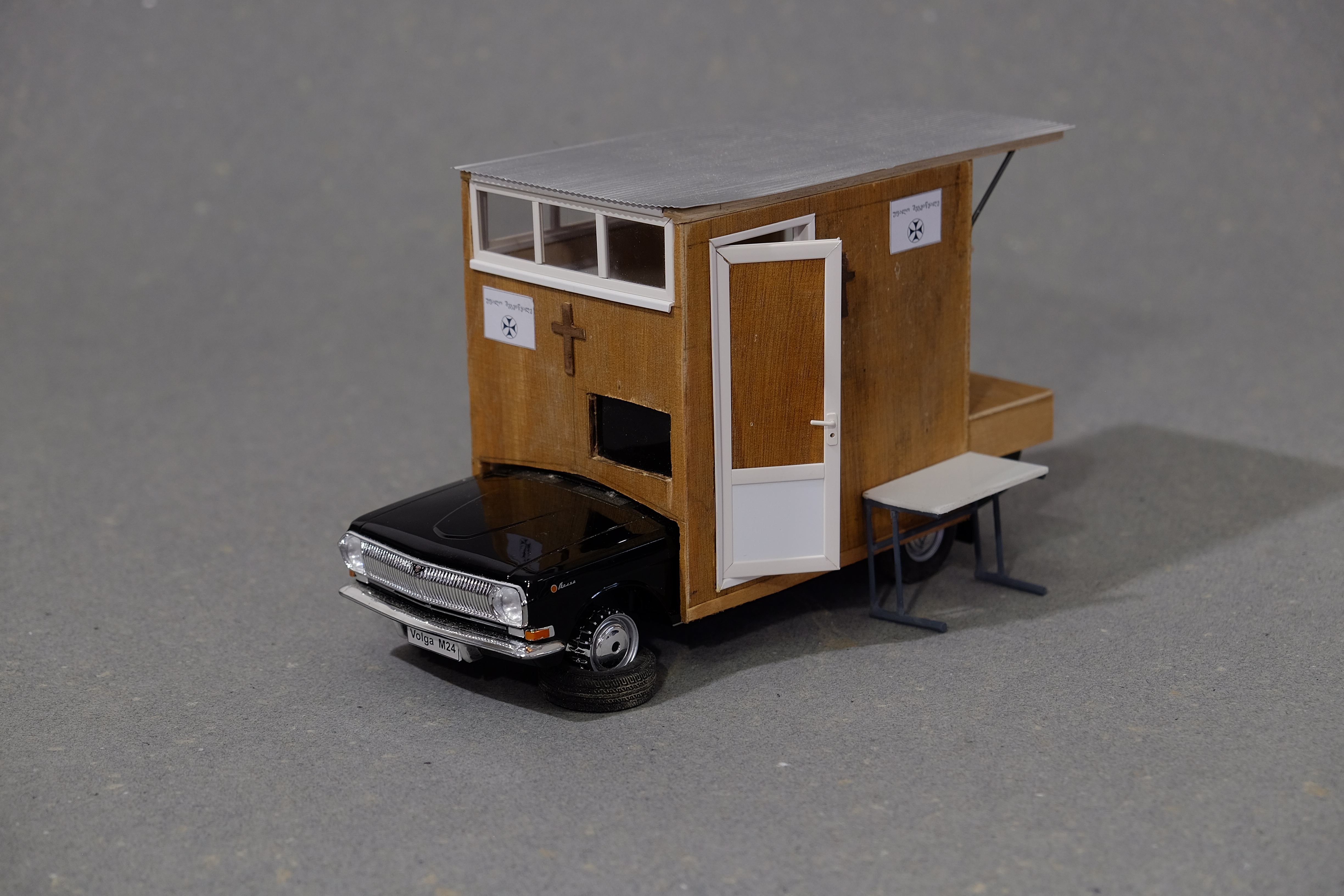 გამოფენის თანმდევი ხმა პატარა ობიექტიდან მოდის, რომელსაც იმდენი დეტალი აქვს, რამდენიც აზრობრივი შრე. ეს ობიექტი გარეუბანში უკვე ნანახის შთაგონებით შეიქმნა – ძველ მანქანაზე დაშენებული საეკლესიო მაღაზიით. ნატალიას ობიექტში, ეს მანქანა შავი ვოლგაა – საბჭოთა დროში მოხვეჭილობის სიმბოლო, რომელზეც არამყარი და შეკოწიწებული მასალითაა დაშენებული ეკლესია, გარედან მიდგმული საბჭოთა მერხით და ფასადზე გამოტანილი ჯვრითა და წარწერებით – უფალო შეგვიწყალენ. ამ ფრაზას დღეში 9-ჯერ ან 40-ჯერ იმეორებს ახლა უკვე შავ პრადოებზე შემომსხდარი სამღვდელოების მრევლი, მაგრამ უფალი, ამ ქვეყანაში, ისევ მხოლოდ სხვების ხარჯზე გამდიდრებულებს წყალობს.